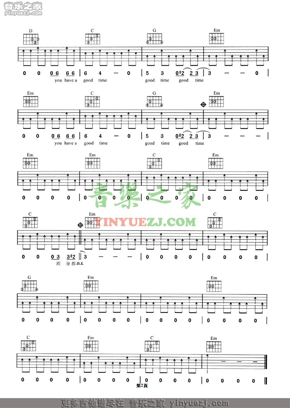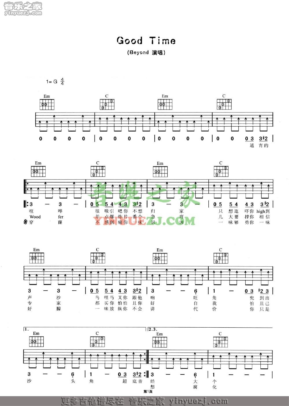 Beyond《good time》吉他谱,YYZJ编配出品,共有2张高清图谱,免翻页排版设计。