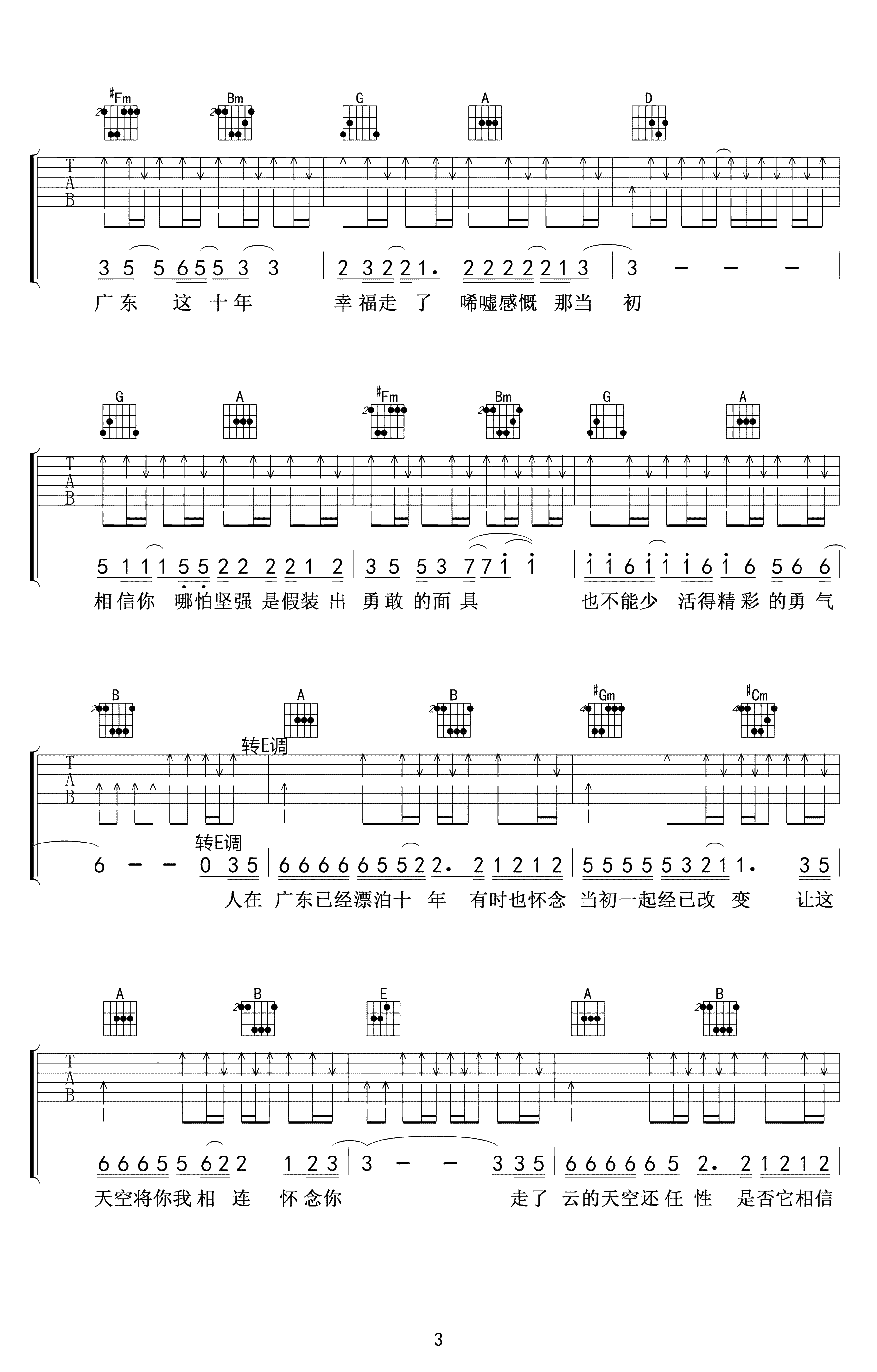 - 广东雨神《广东十年爱情故事》吉他谱 - 完整版