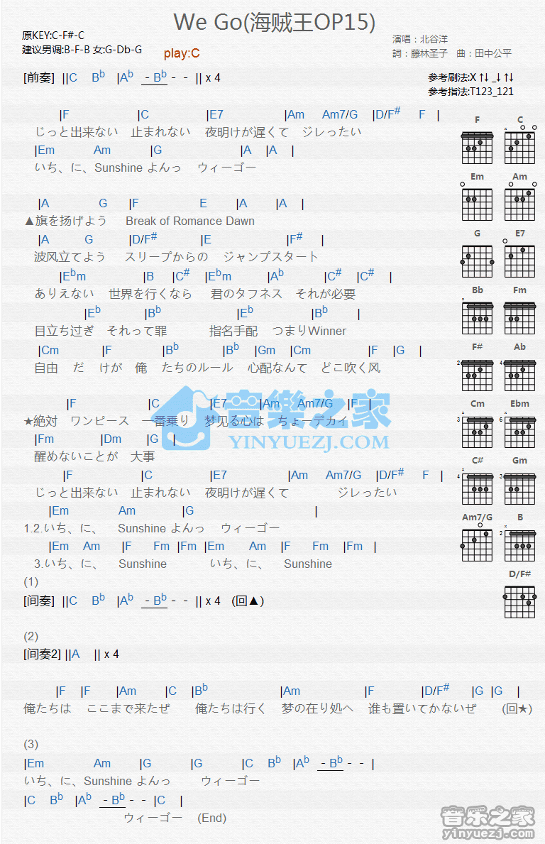 北谷洋《We Go》吉他谱,共有1张高清图谱,免翻页排版设计。C调版北谷洋《WeGo》吉他和弦弹唱谱