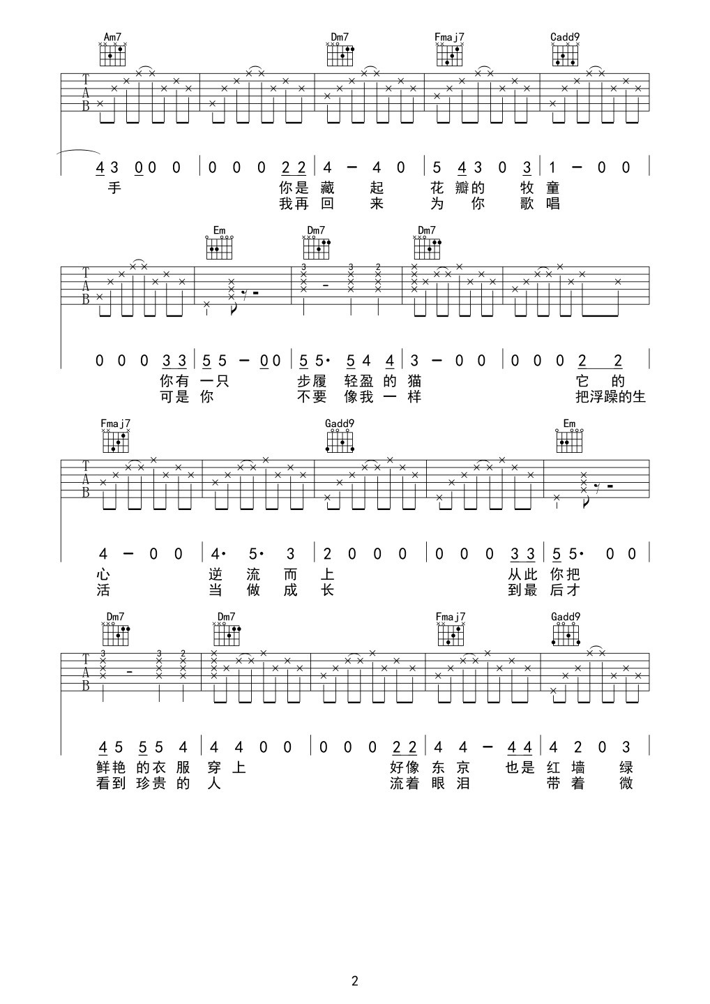 - 宋冬野《董小姐》吉他谱 - 完整版