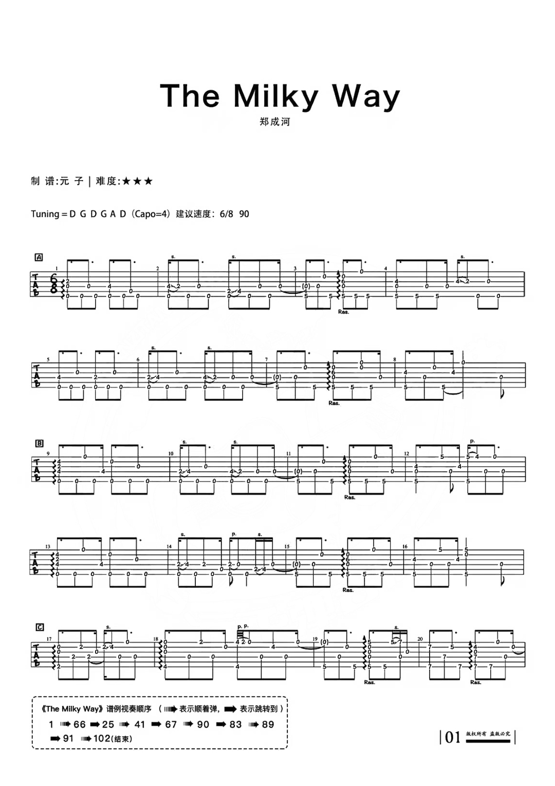 郑成河《The Milky Way》吉他谱,元子编配出品,共有4张高清图谱。郑成河《The Milky Way》吉他谱_吉他独奏谱