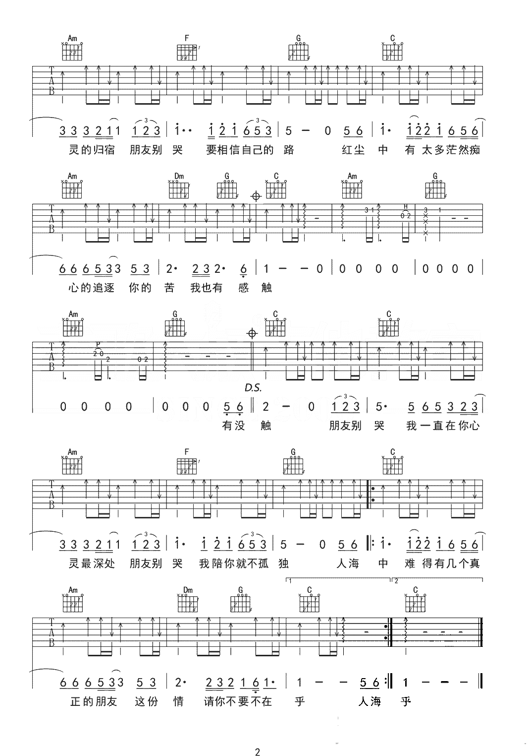 吕方《朋友别哭》吉他谱 - 非常多人都在弹的版本