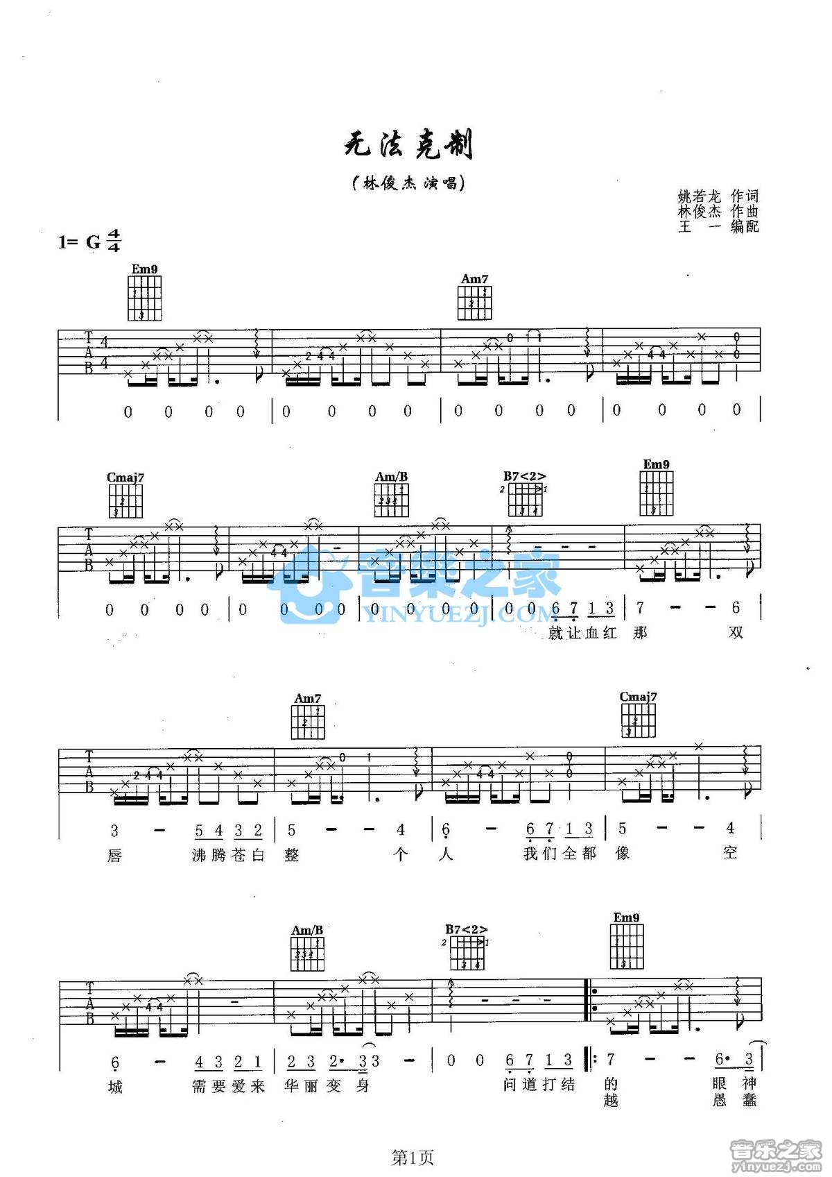 林俊杰《无法克制》吉他谱
