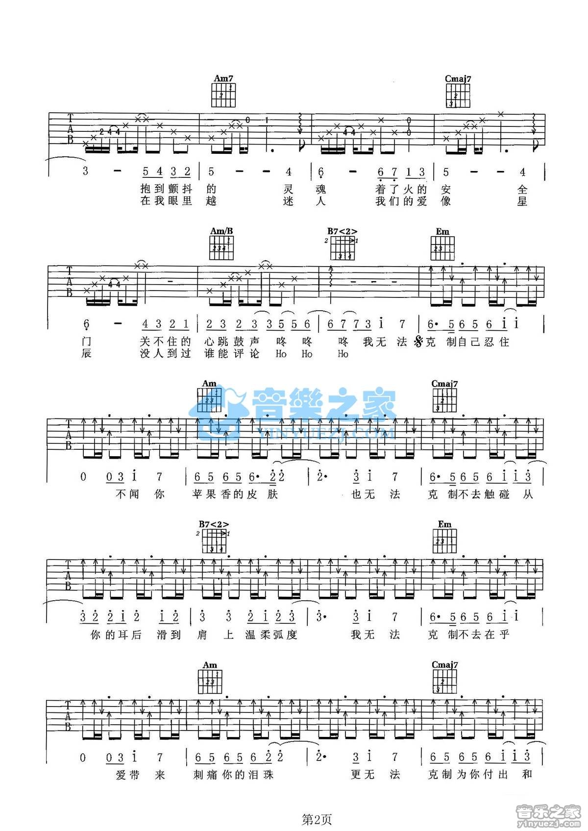 林俊杰《无法克制》吉他谱,共有3张高清图谱。G调版林俊杰《无法克制》吉他弹唱六线谱