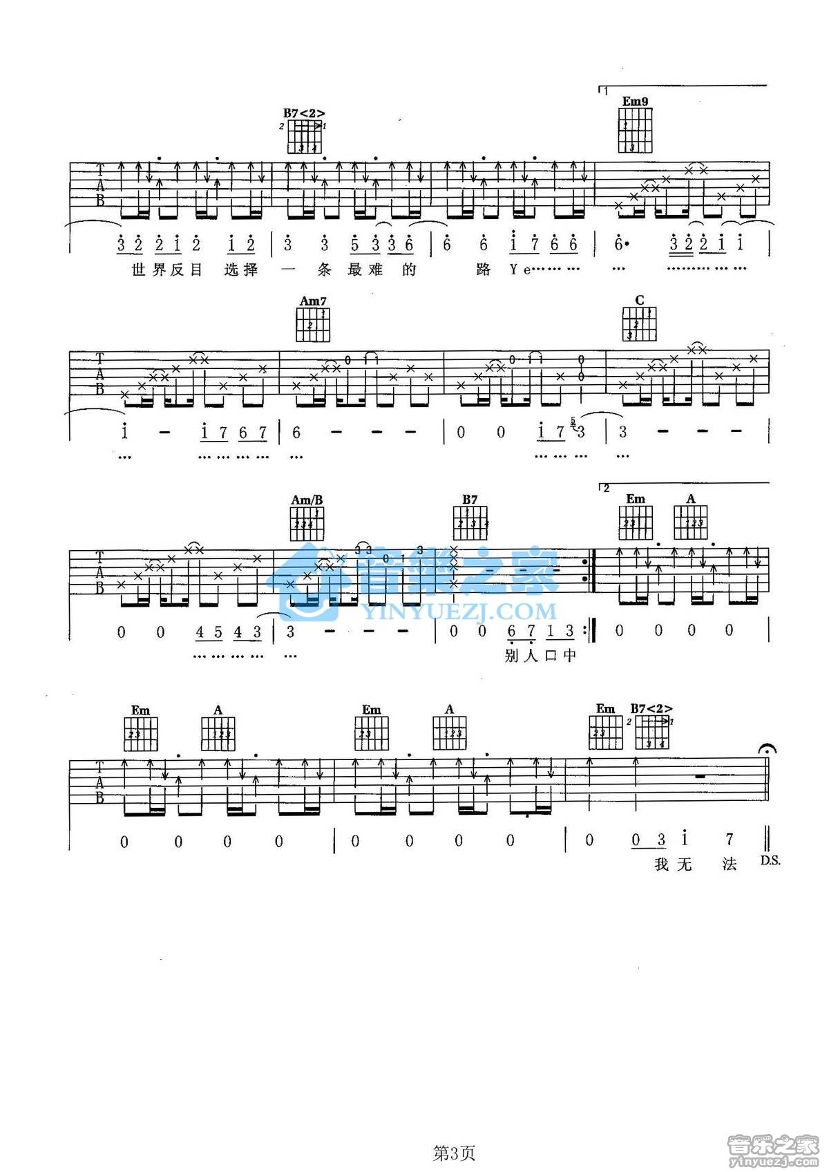 - 林俊杰《不为谁而作的歌》吉他谱 - 完整版
