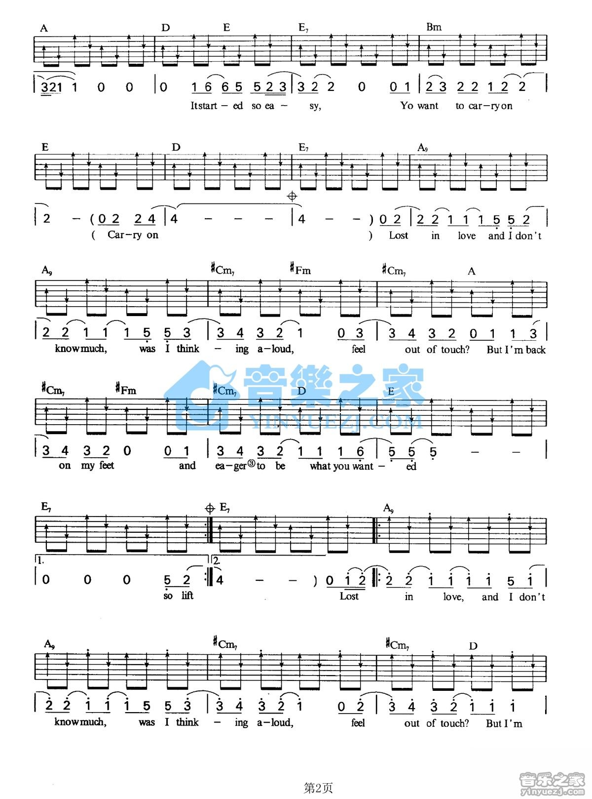 Air Supply《Lost In Love》吉他谱,共有3张高清图谱。A调版AirSupply《LostInLove》吉他弹唱六线谱