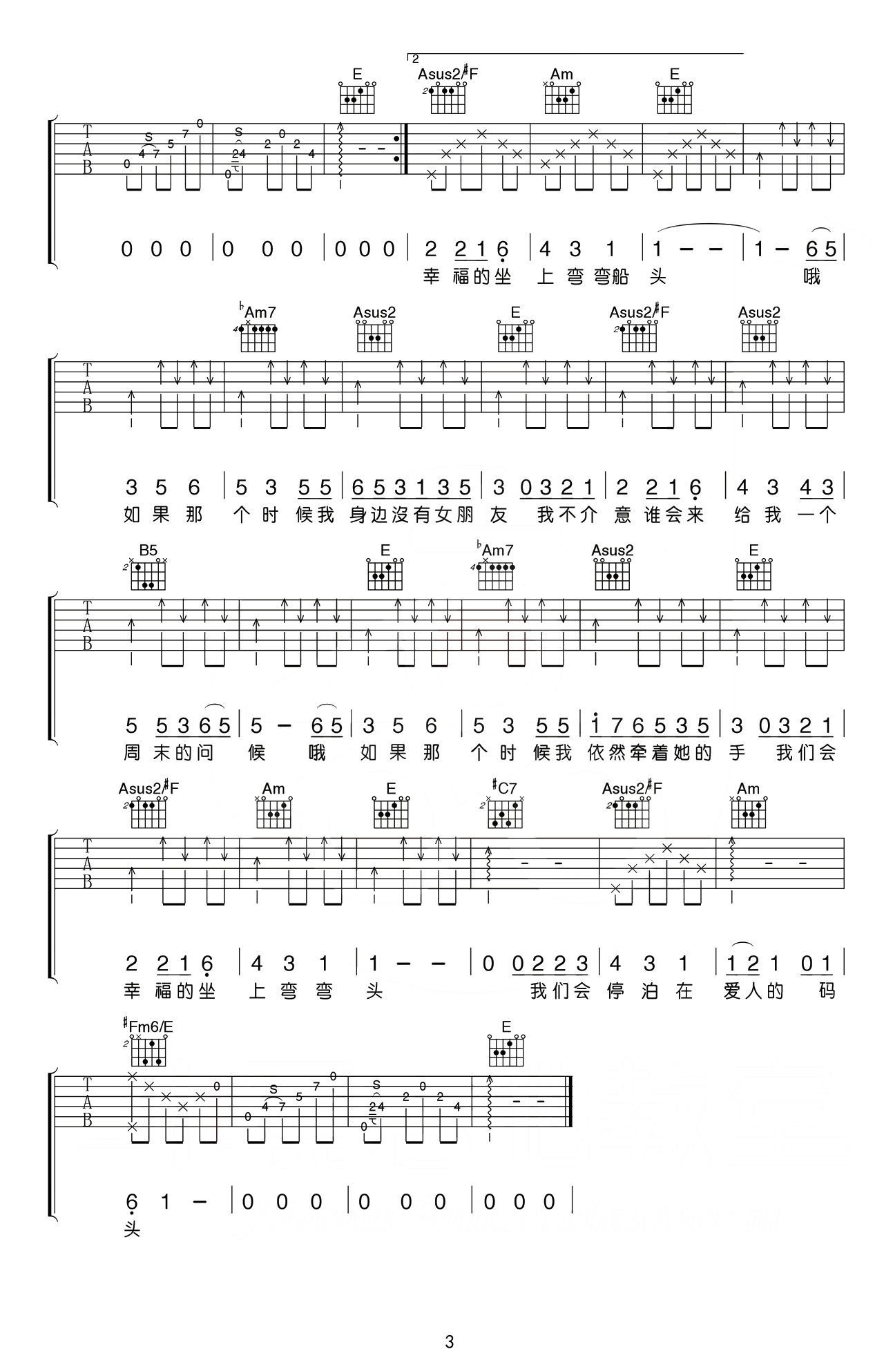 小猛/大乔小乔《农夫渔夫》吉他谱 - 完整版