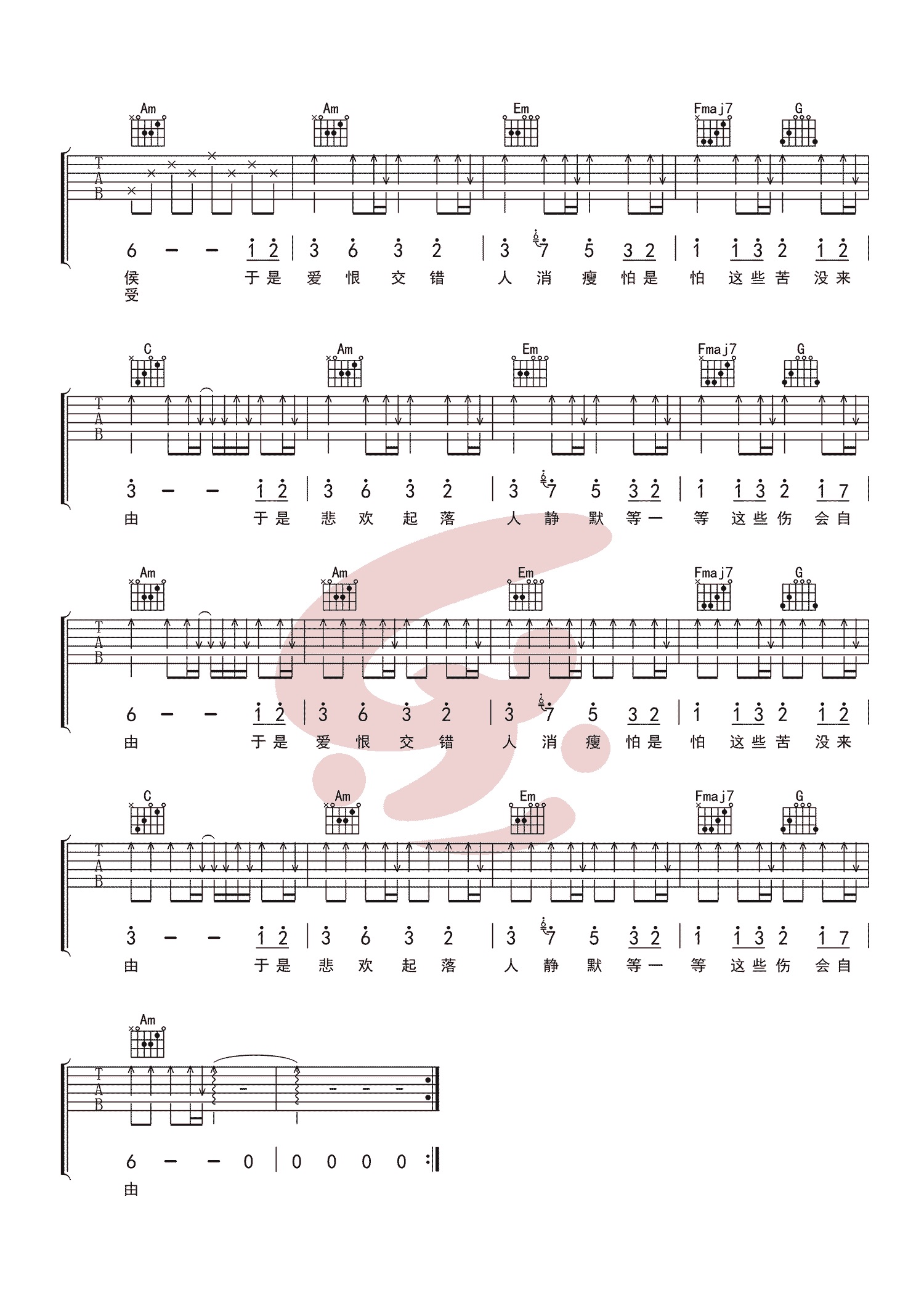 - 侃侃《爱情啊》吉他谱 - 非常多人都在弹的版本