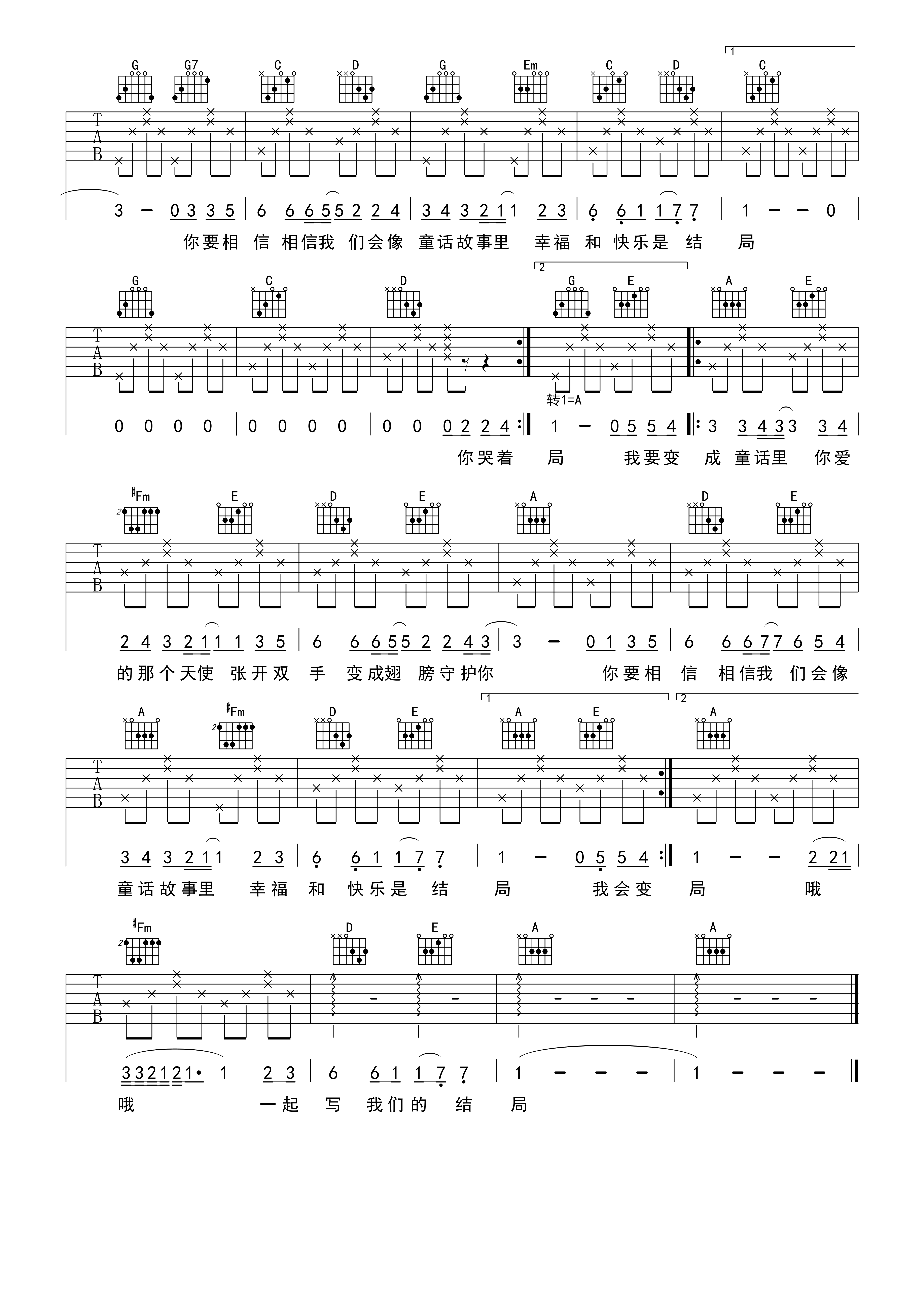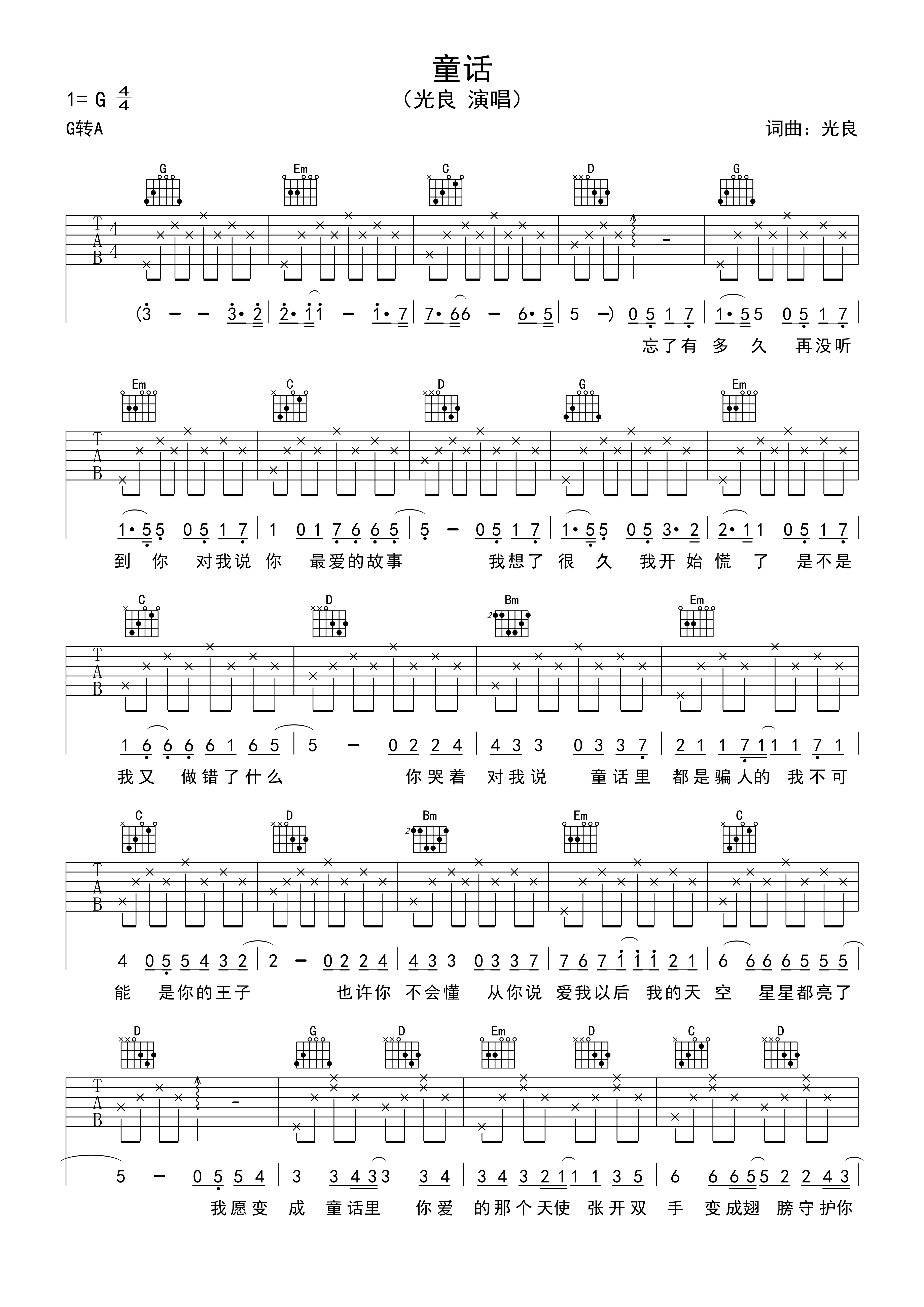- 光良《童话》吉他谱 - 完整版