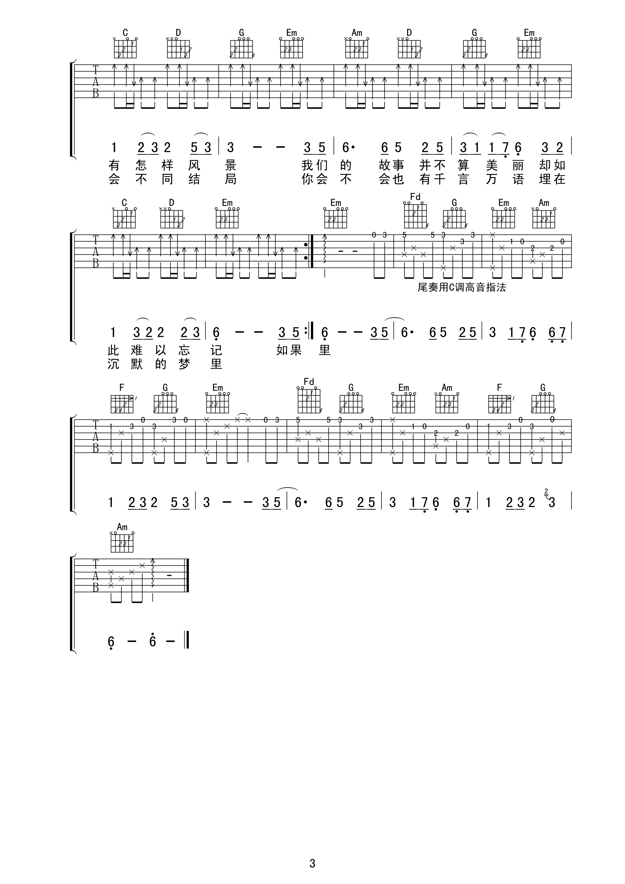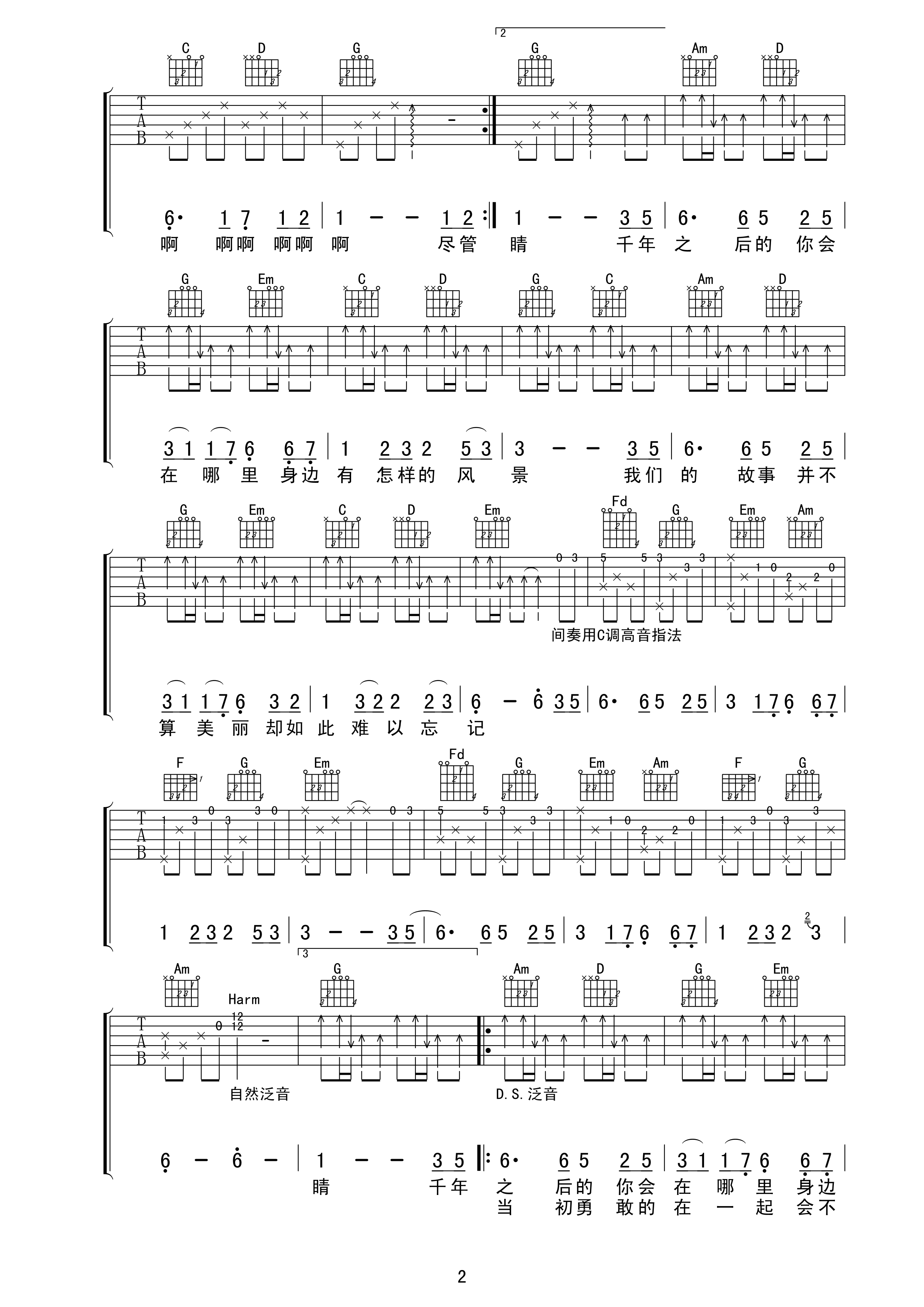 金莎《星月神话》吉他谱,共有3张高清图谱。