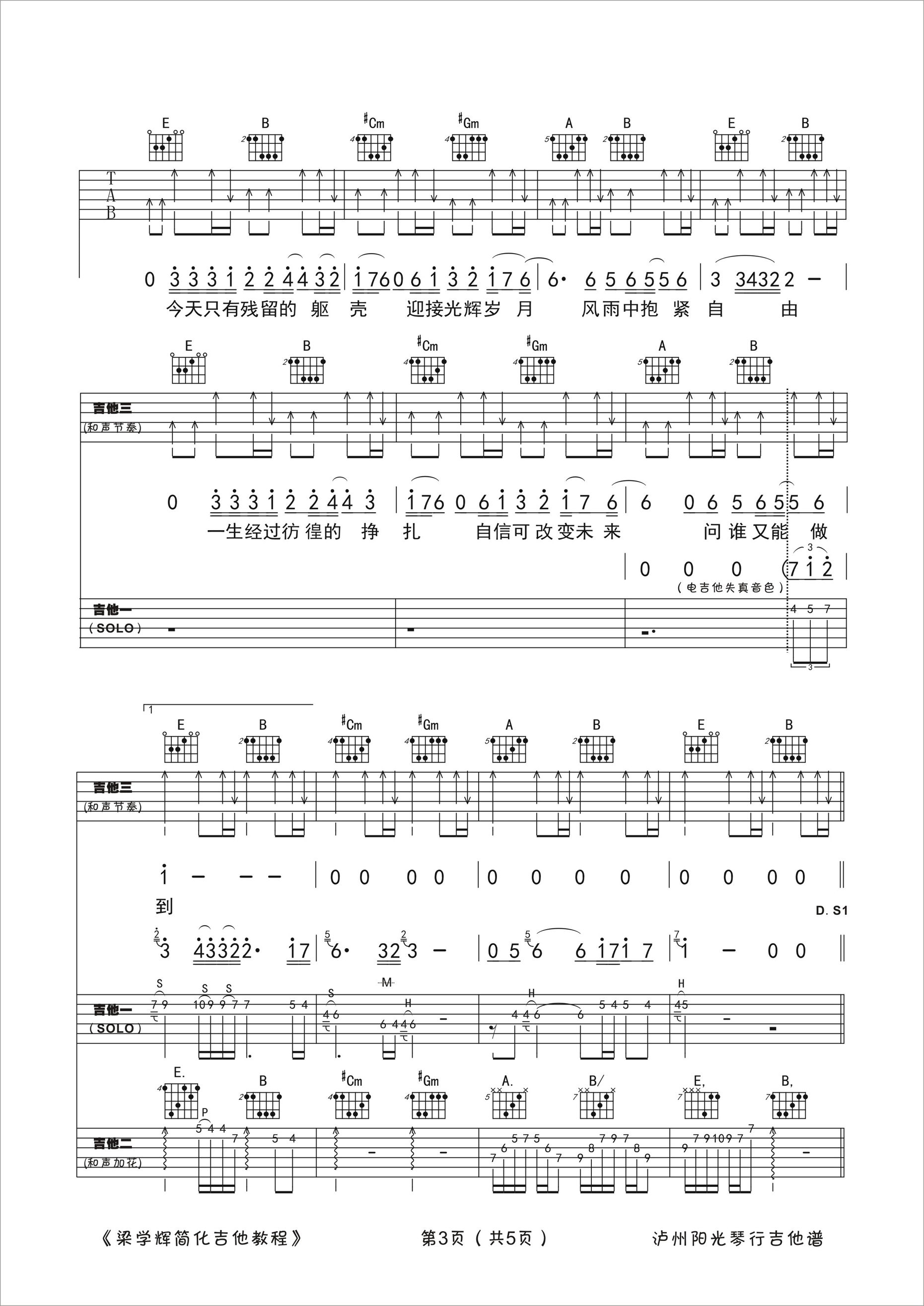 Beyond《光辉岁月》吉他谱,梁学辉编配出品,共有5张高清图谱。