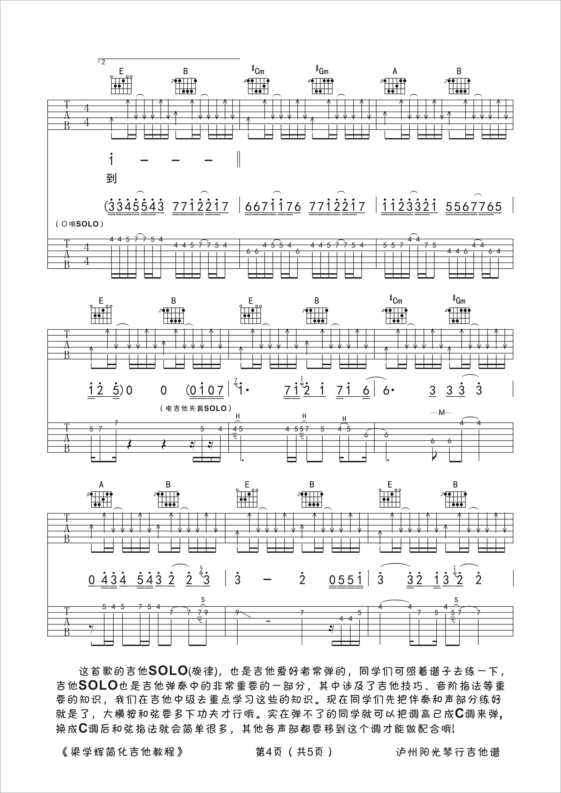 - Beyond《喜欢你》吉他谱 - 邓老师编配