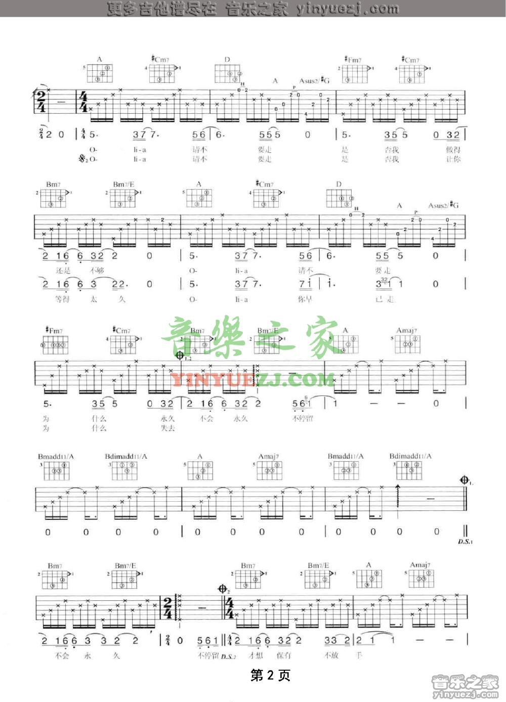 - 陶喆《Olia》吉他谱 - 非常多人都在弹的版本