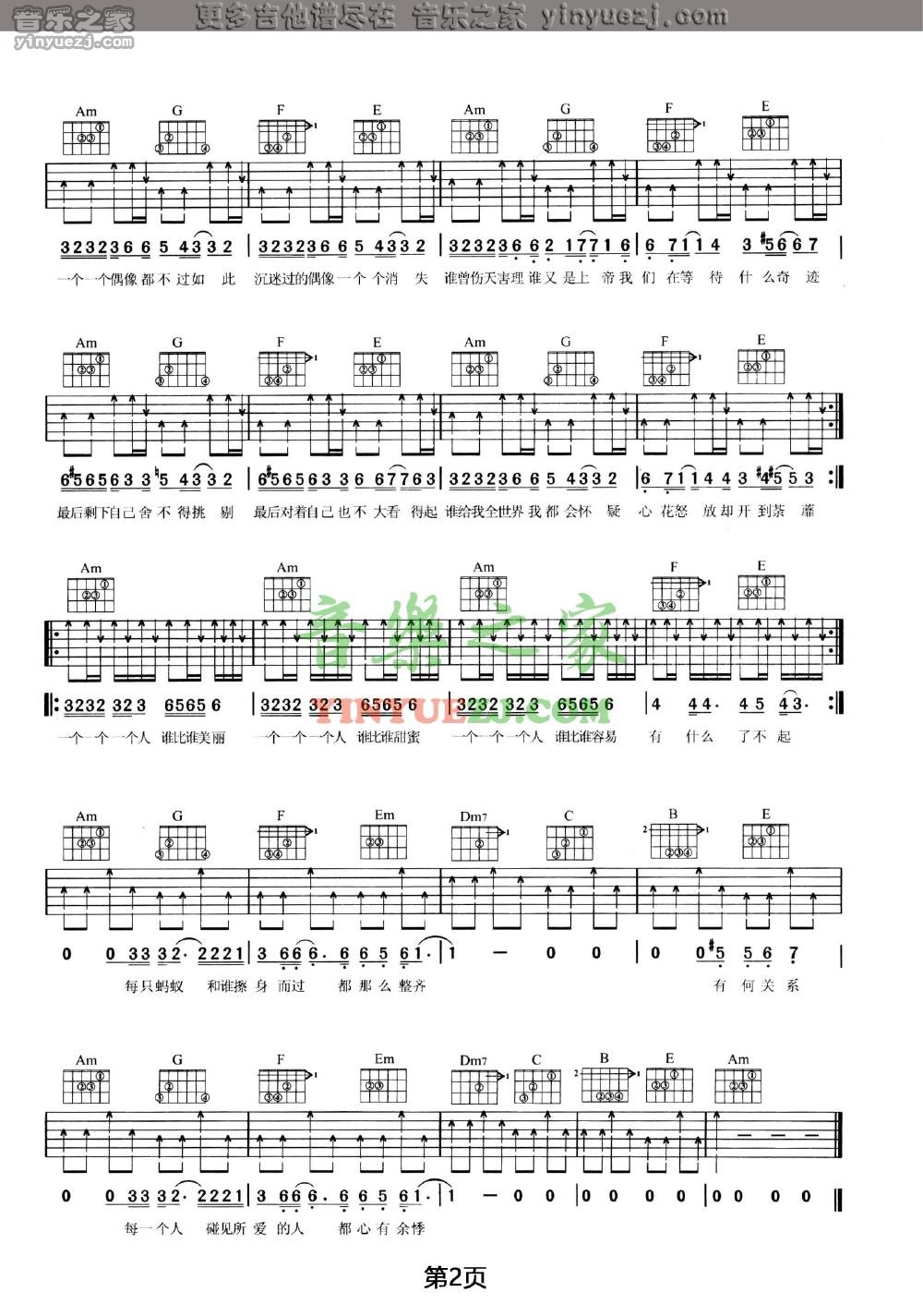 王菲《开到荼蘼》吉他谱,YYZJ编配出品,共有2张高清图谱,免翻页排版设计。