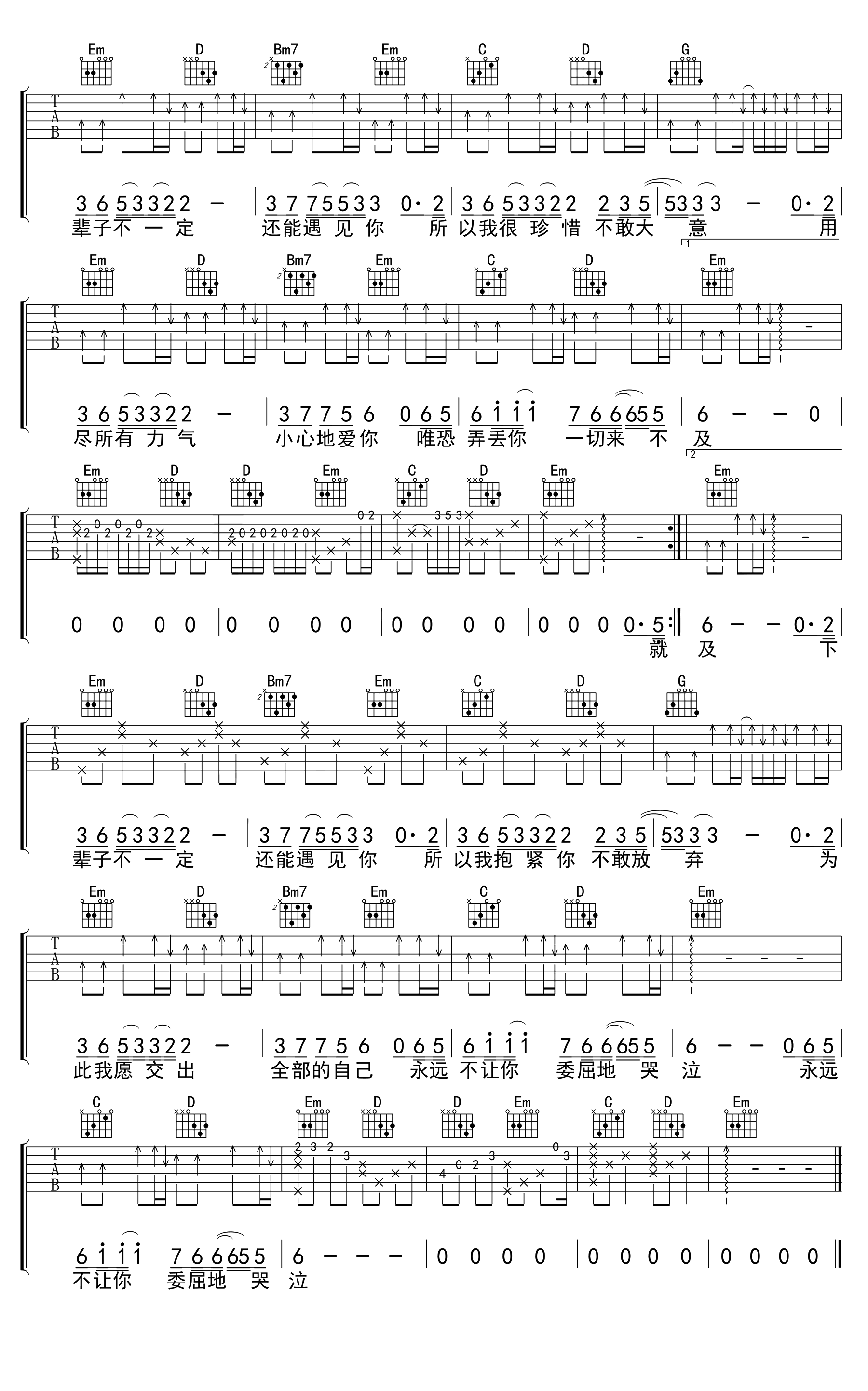 陈雅森《下辈子不一定还能遇见你》吉他谱,吉他专家编配出品,共有2张高清图谱,免翻页排版设计。
