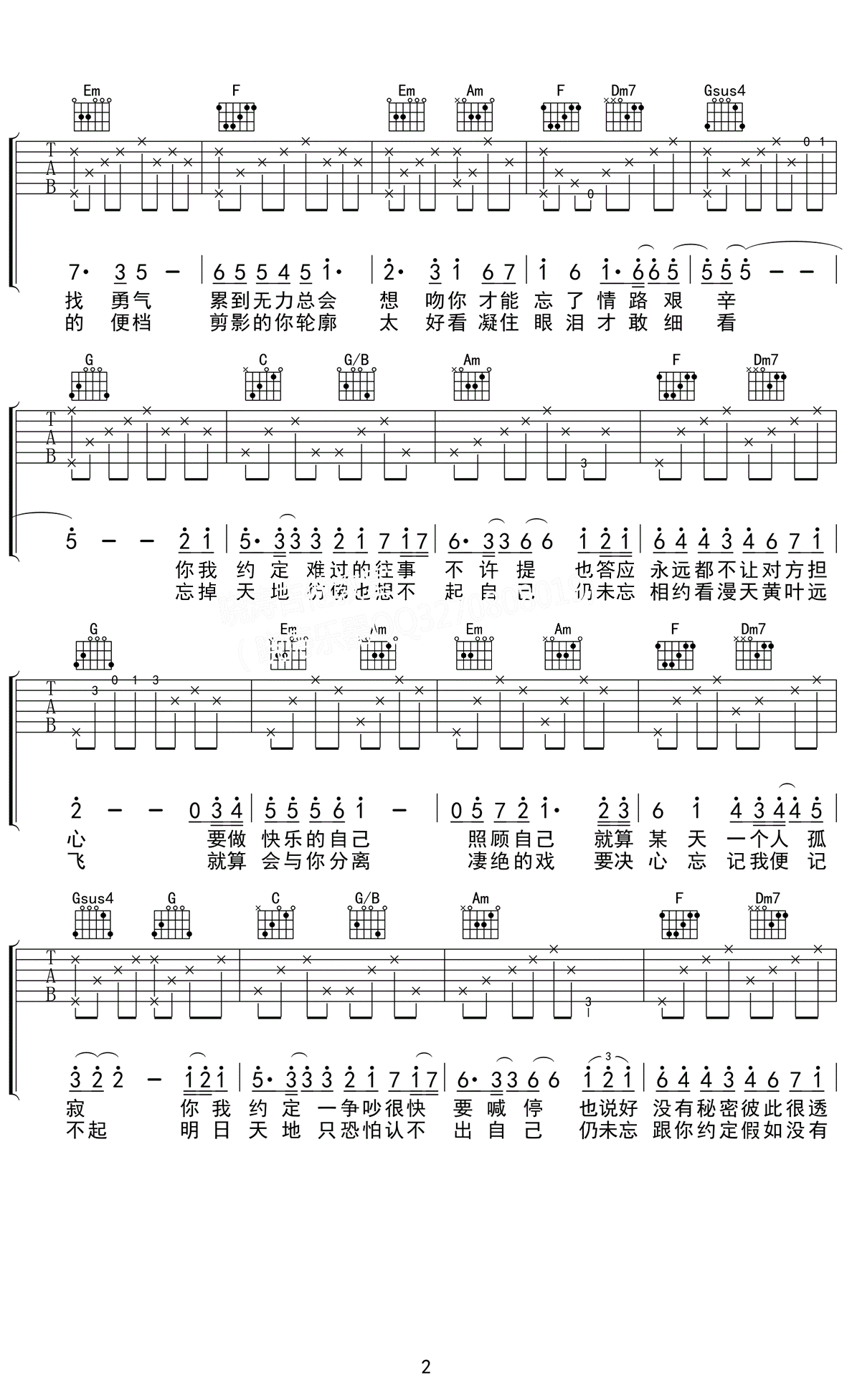 周蕙陈奕迅《约定》吉他谱