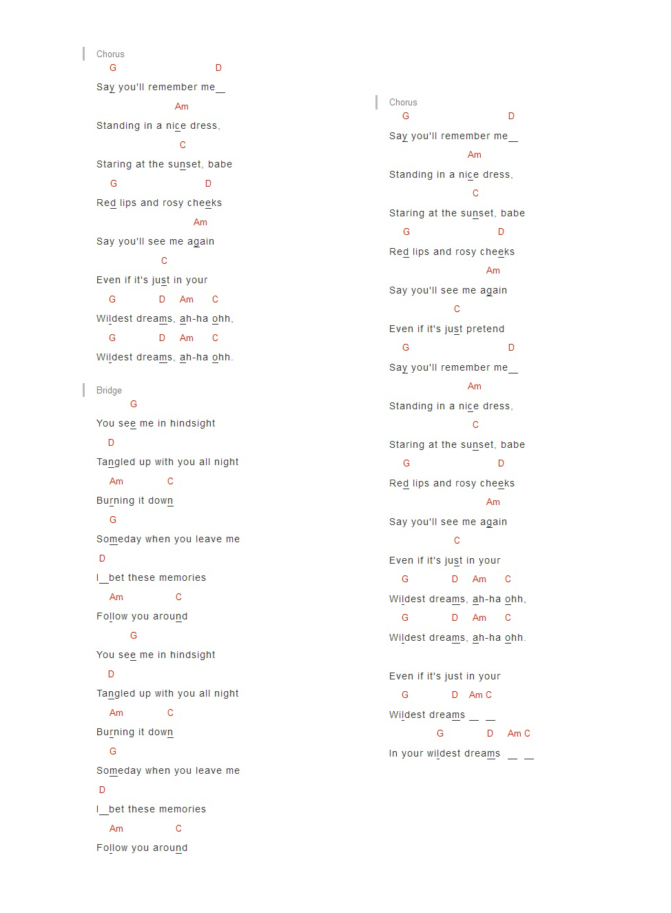 TaylorSwift《Wilddest Dreams》吉他谱