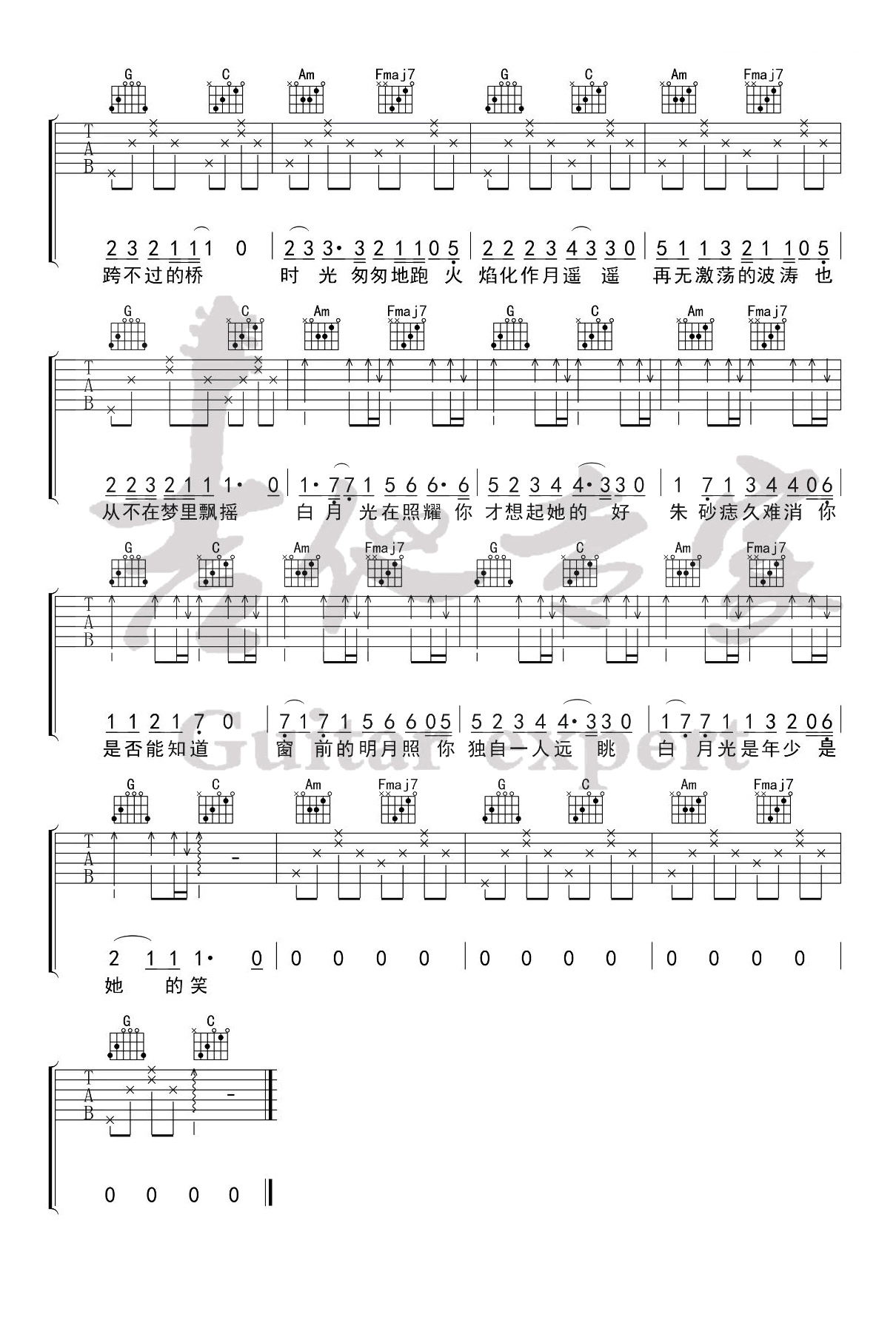 - 大籽《白月光与朱砂痣》吉他谱 - 很多人都在弹的版本