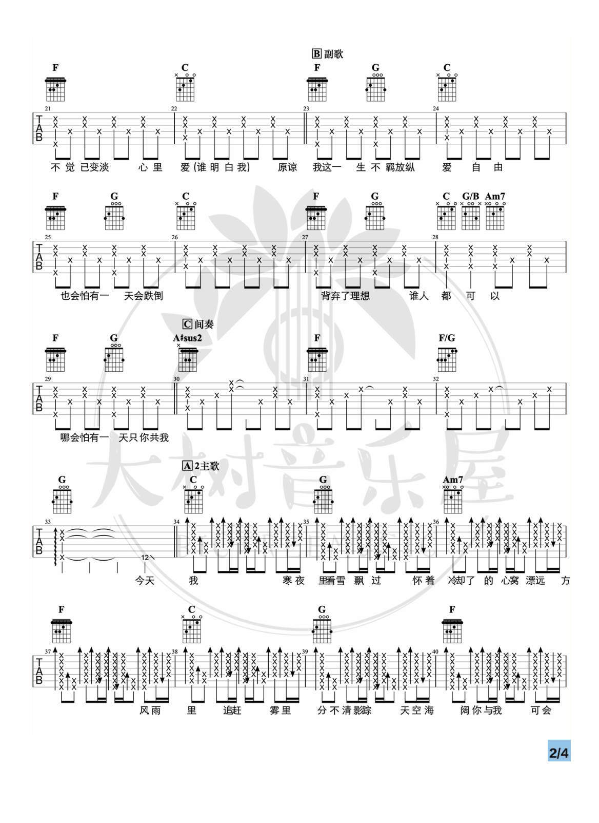 - 小猛/大乔小乔《农夫渔夫》吉他谱 - 完整版