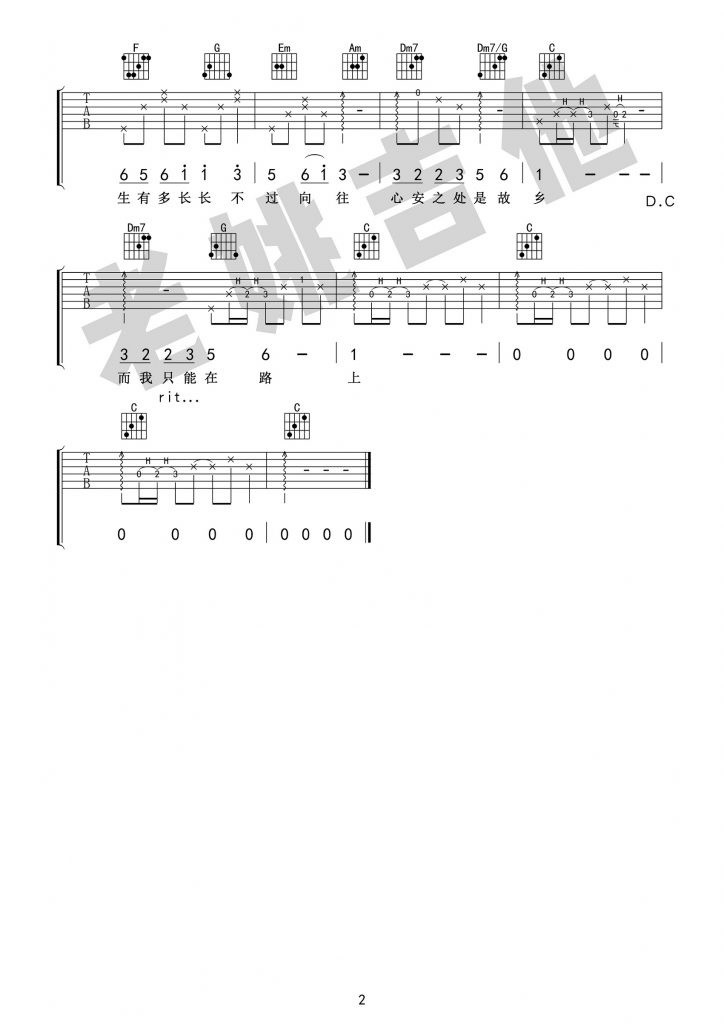 秦霄贤/郭霄汉《心安之处》吉他谱,老姚吉他编配出品,共有2张高清图谱,免翻页排版设计。