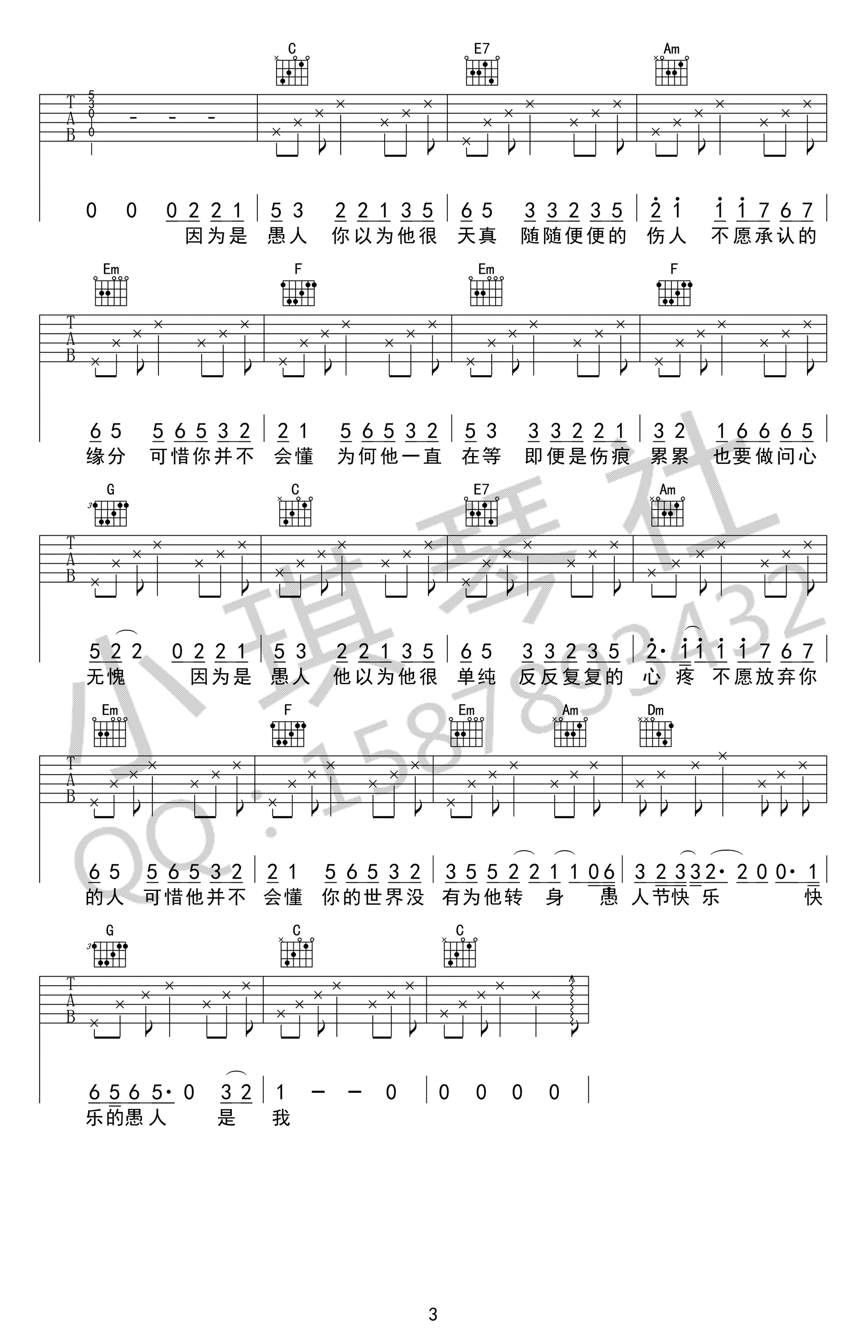 赵烁《愚人》吉他谱 - 免费版