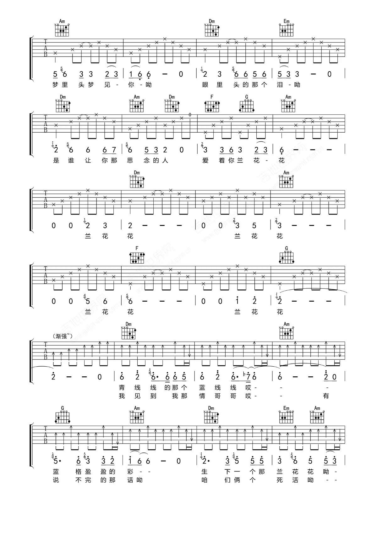 刘建东《梦中的兰花花》吉他谱 - 非常多人都在弹的版本