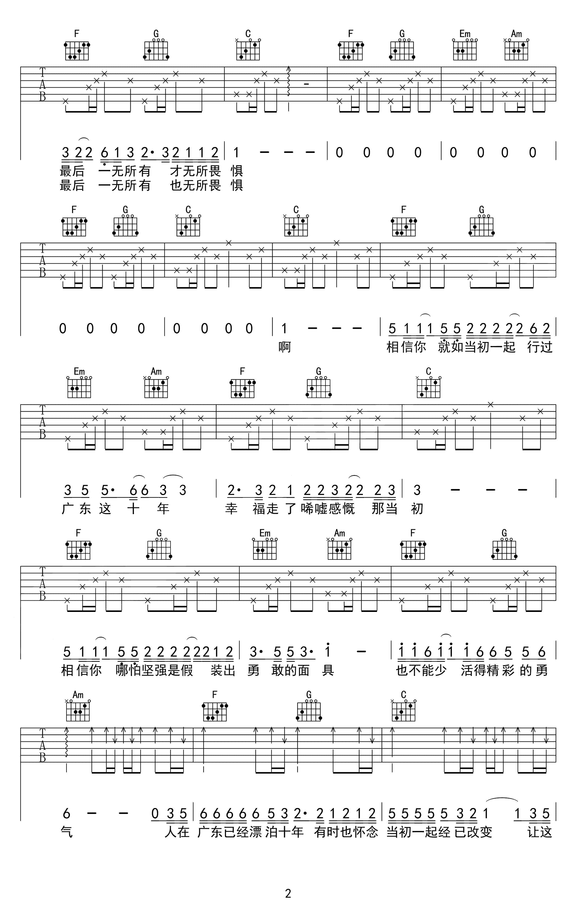 - 广东雨神《广东十年爱情故事》吉他谱 - 完整版