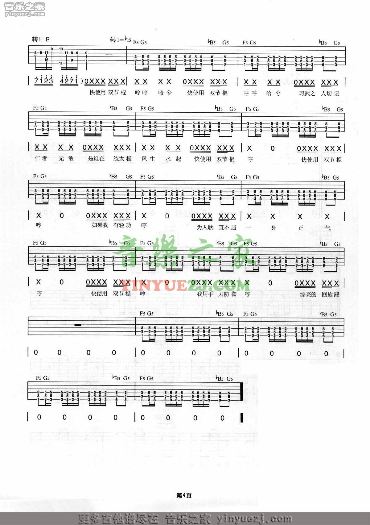 周杰伦《双截棍》吉他谱,YYZJ编配出品,共有4张高清图谱。