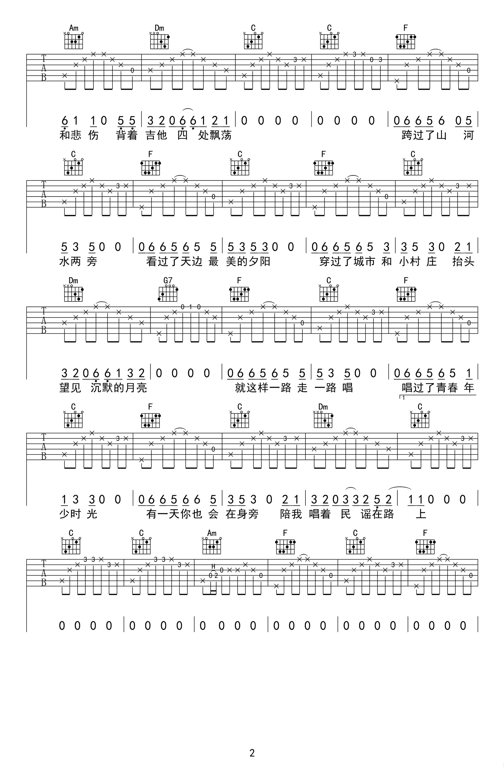 前冲《民谣在路上》吉他谱 - 很多人都在弹的版本