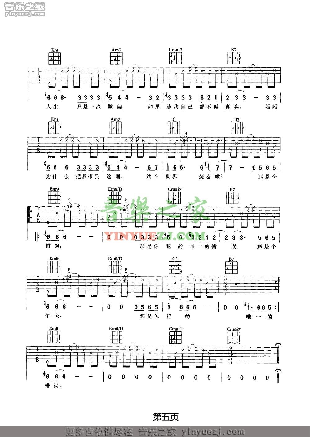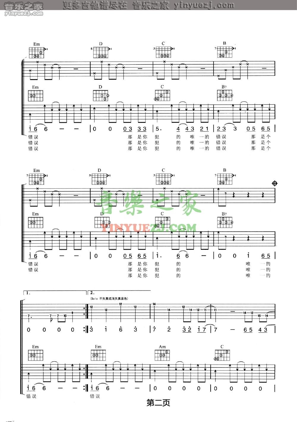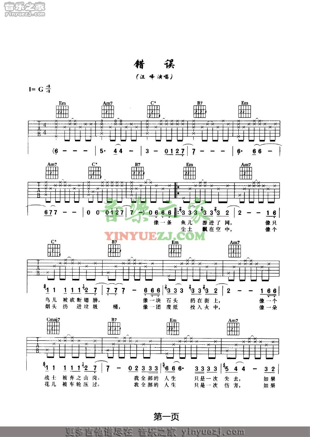汪峰《错误》吉他谱,YYZJ编配出品,共有11张高清图谱。