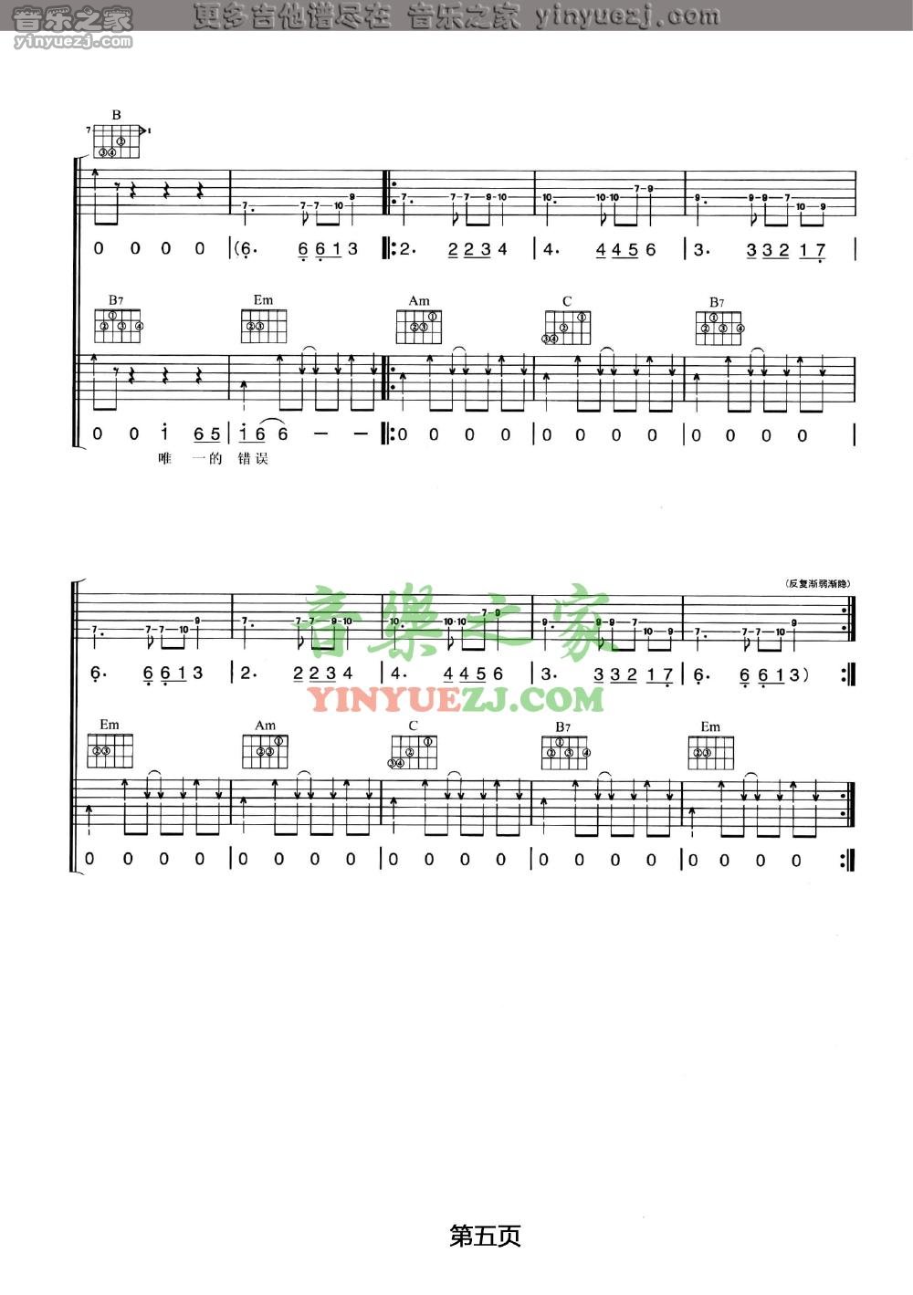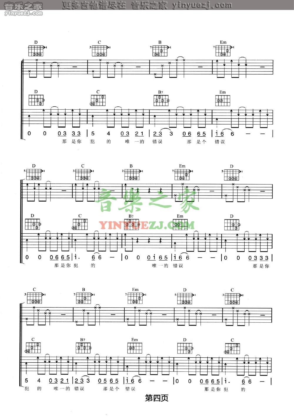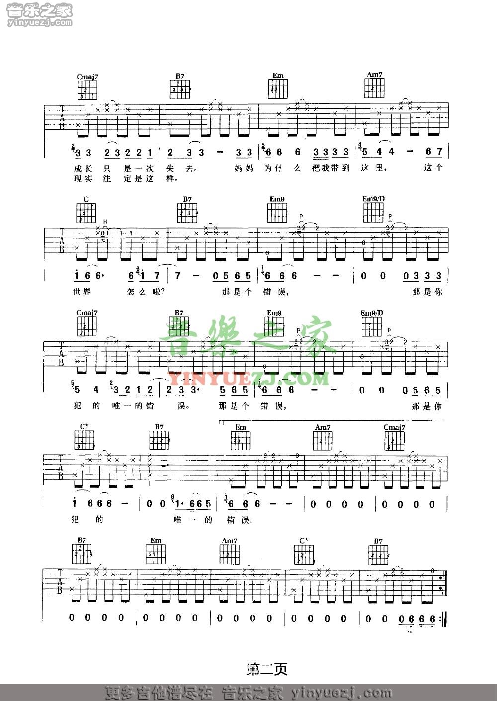 汪峰《错误》吉他谱,YYZJ编配出品,共有11张高清图谱。
