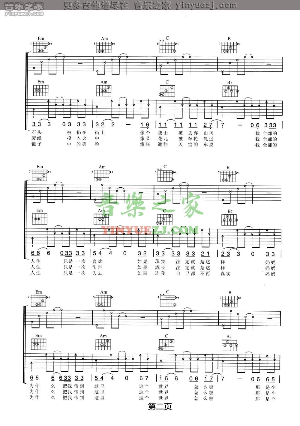 - 汪峰《破碎的歌谣》吉他谱 - YYZJ编配