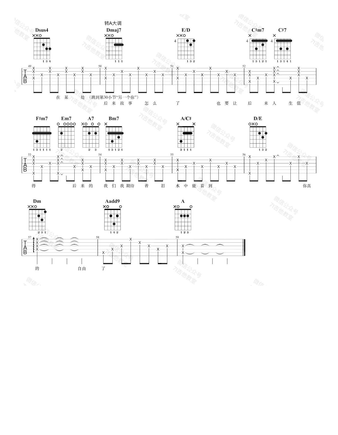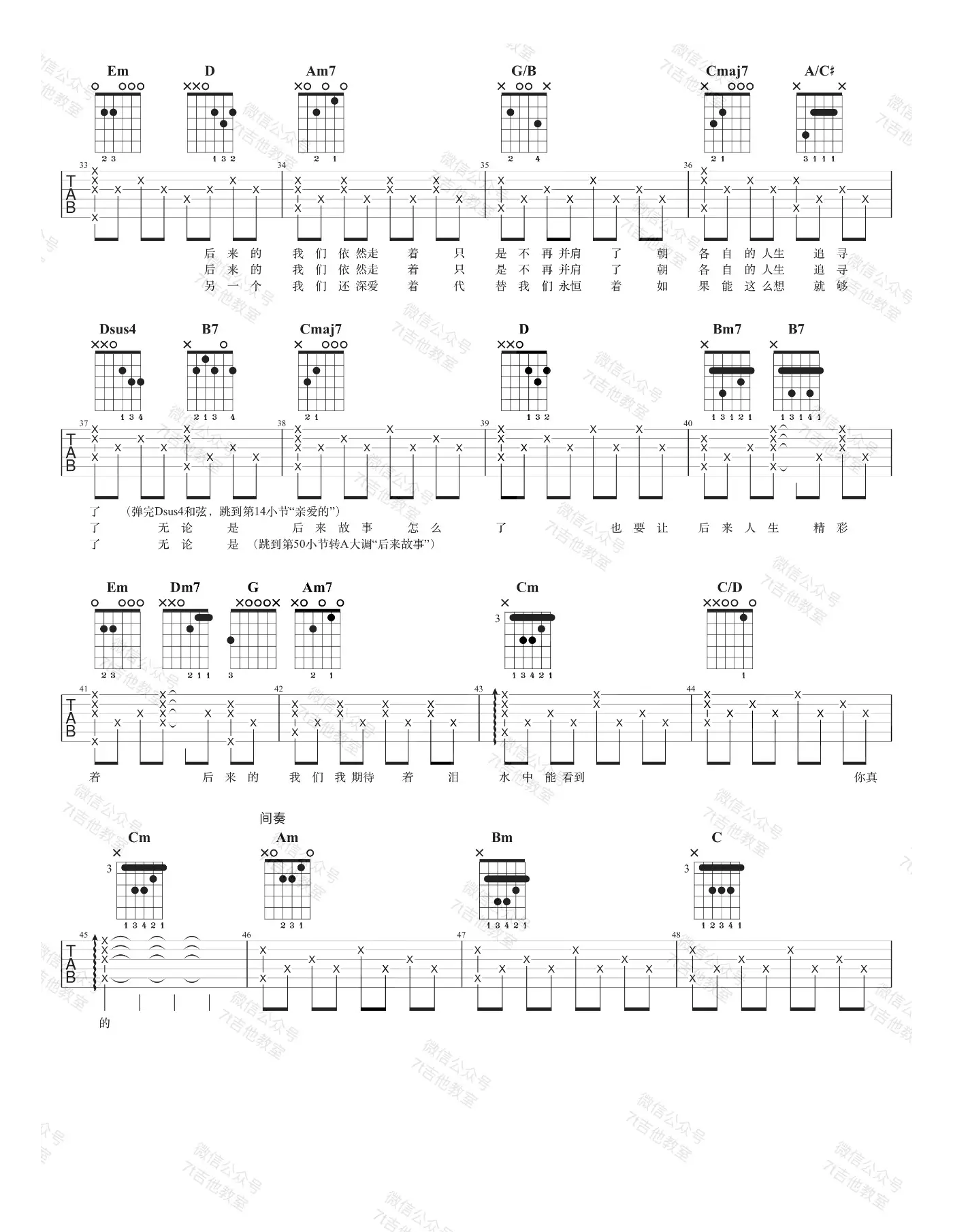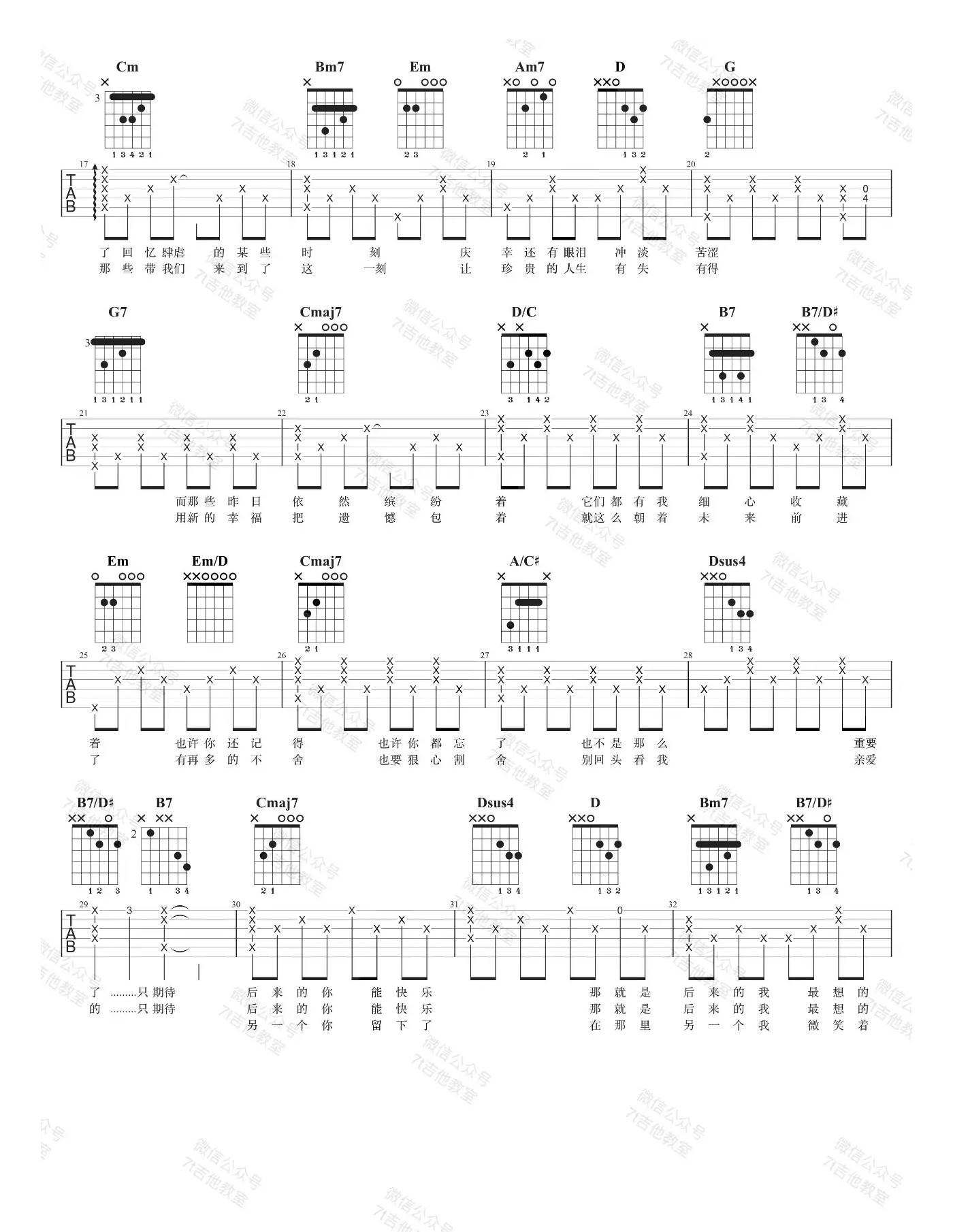 五月天《后来的我们》吉他谱,7T吉他教室编配出品,共有4张高清图谱。