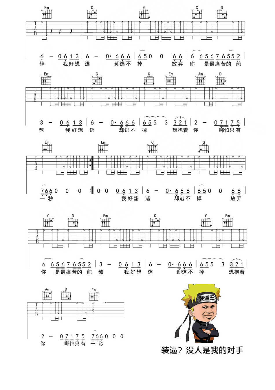 侯旭《逃》吉他谱 - 很多人都在弹的版本