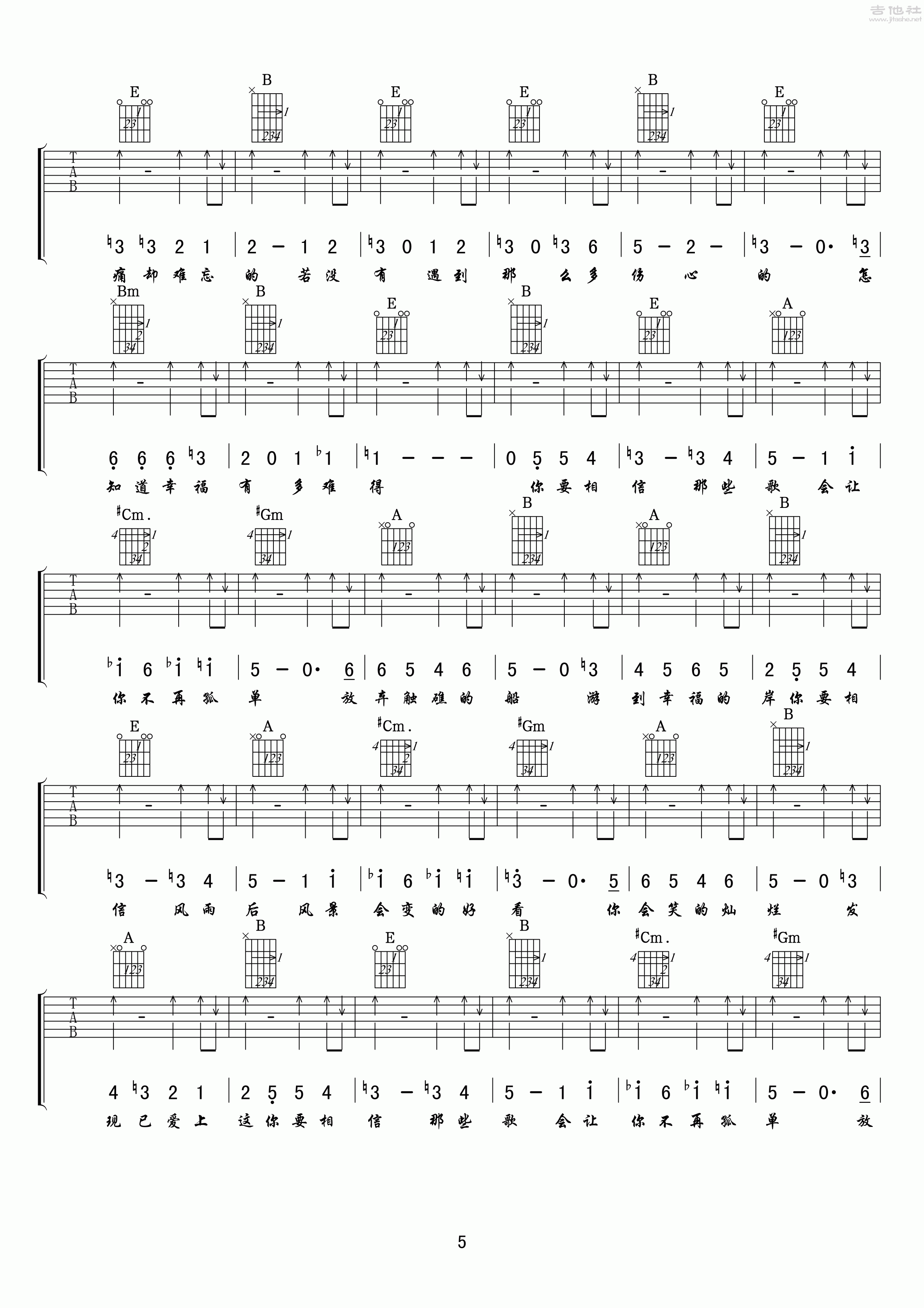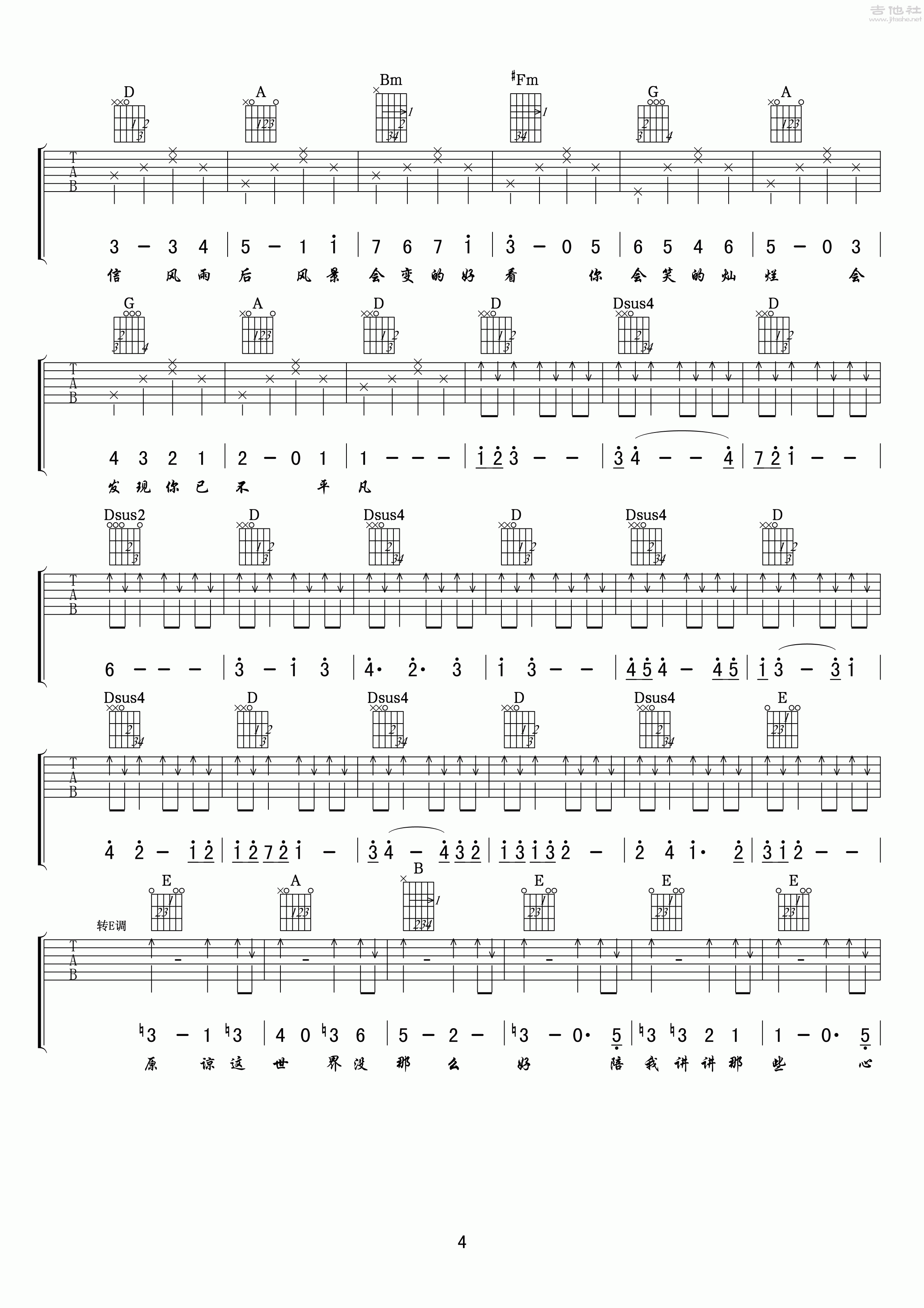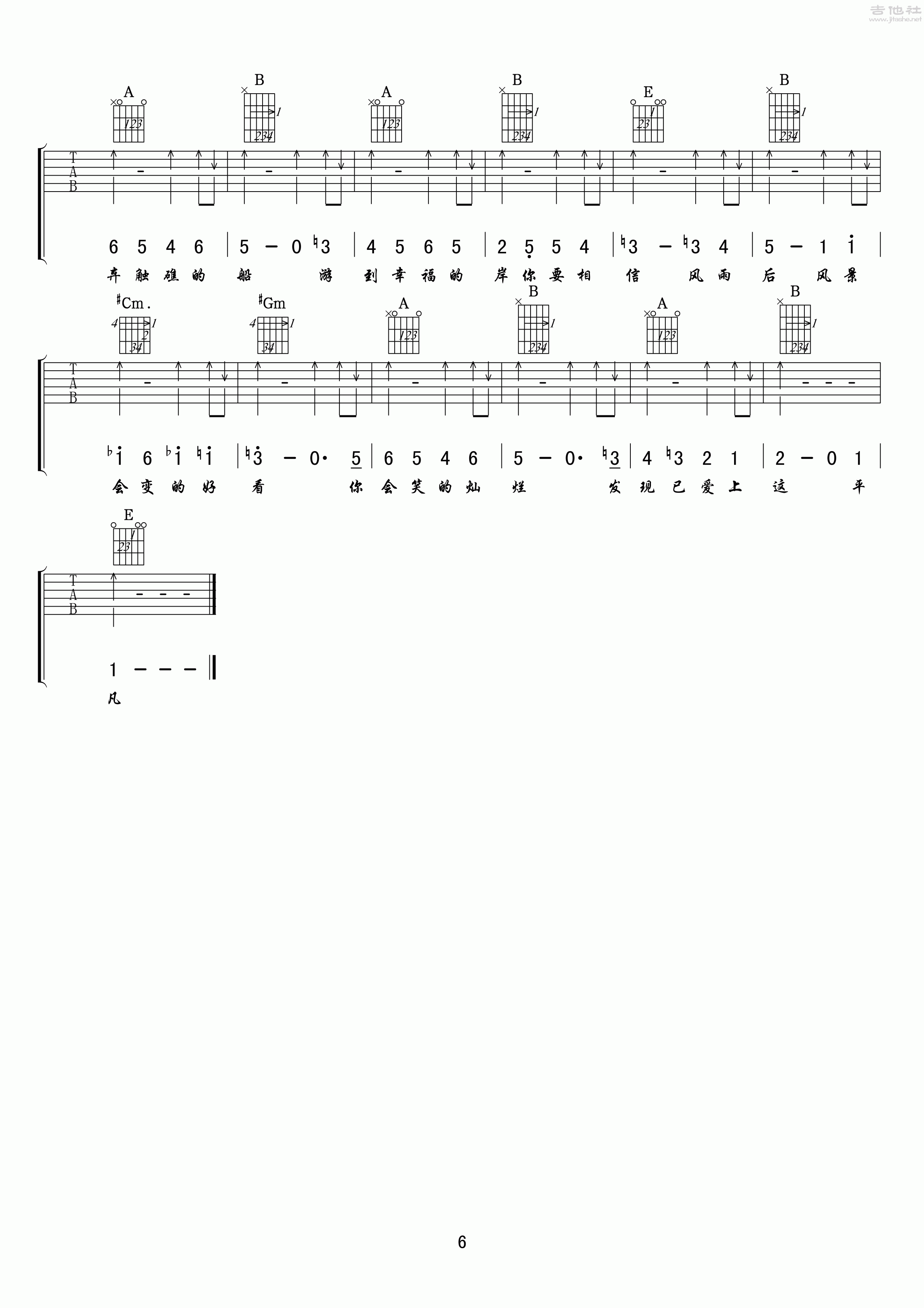 孙子涵《原谅这世界没那么好》吉他谱,小叶歌编配出品,共有6张高清图谱。