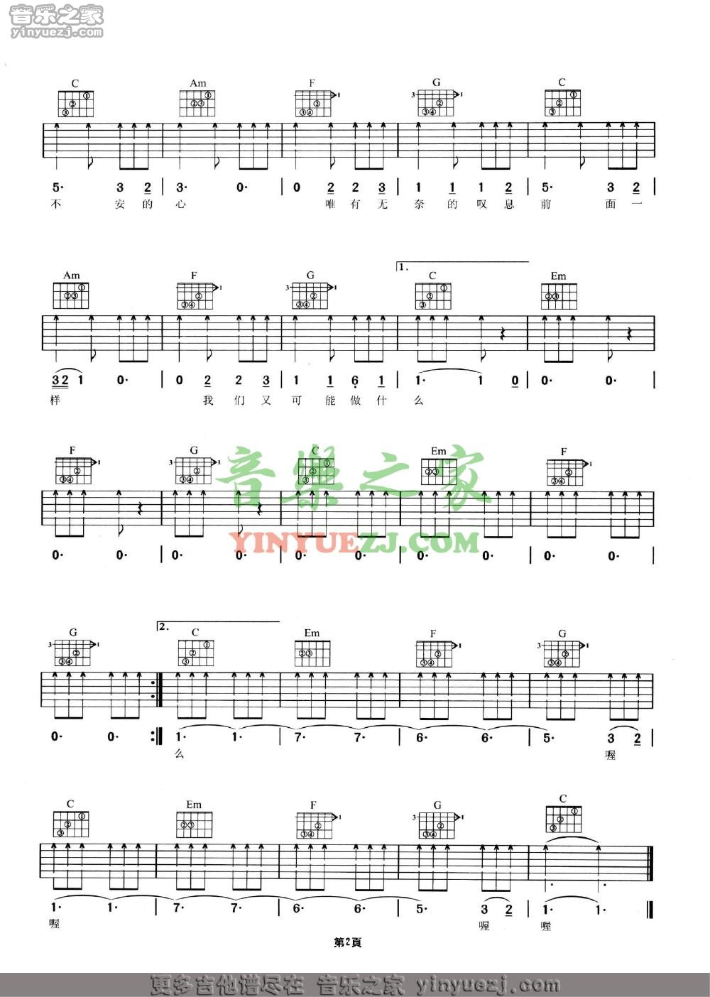 Beyond《九十年代的忧伤》吉他谱,YYZJ编配出品,共有2张高清图谱,免翻页排版设计。