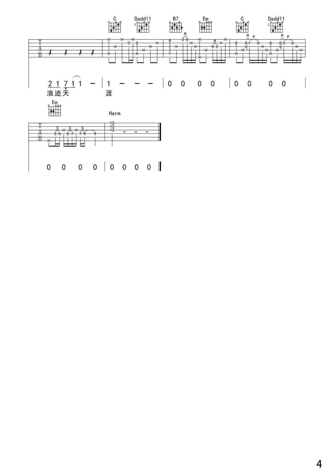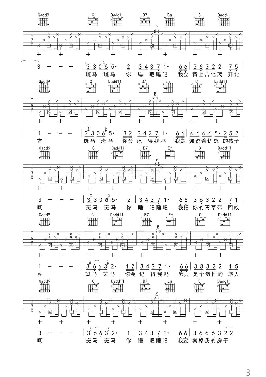 - 宋冬野《斑马斑马》吉他谱