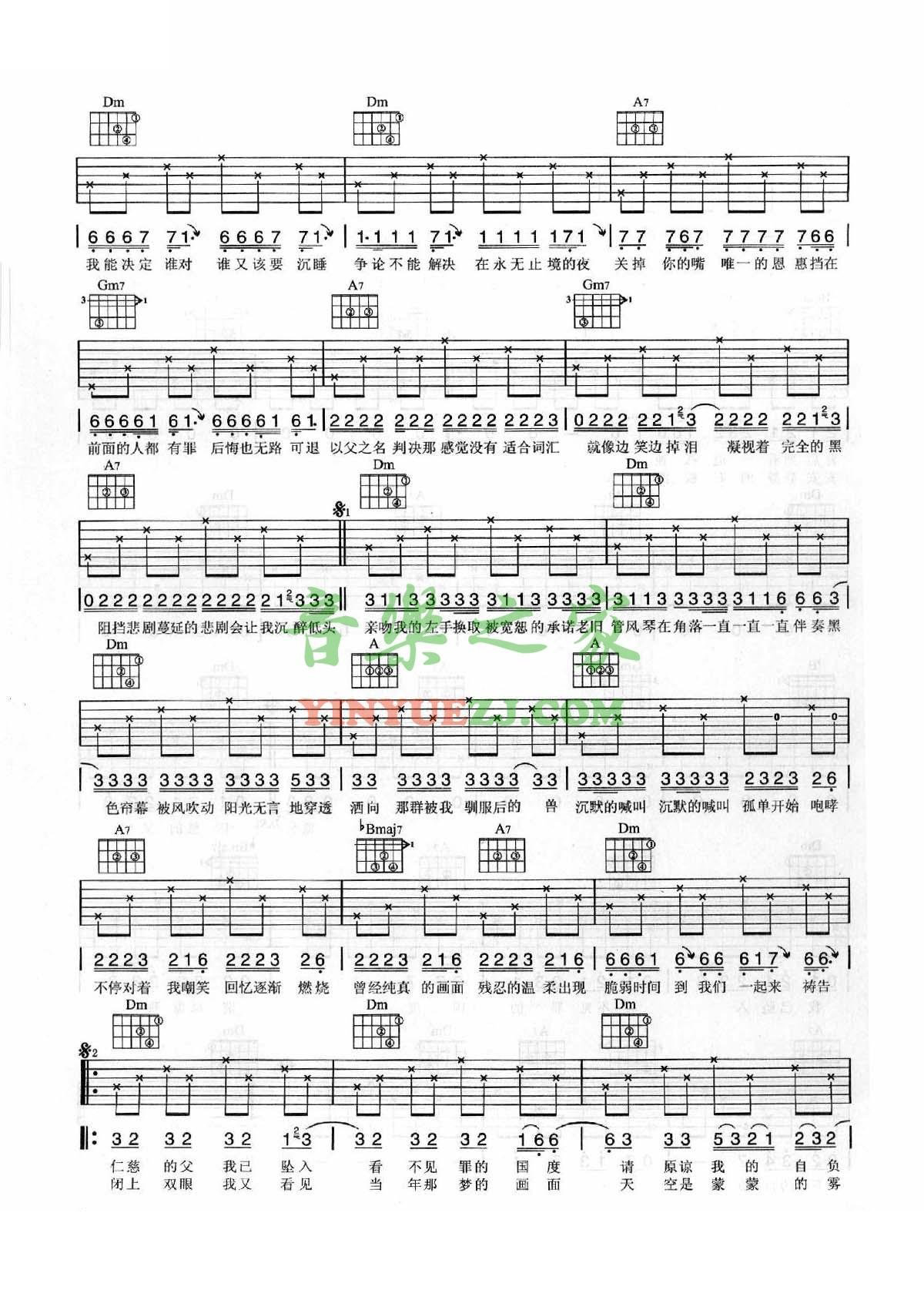 周杰伦《以父之名》吉他谱,共有3张高清图谱。