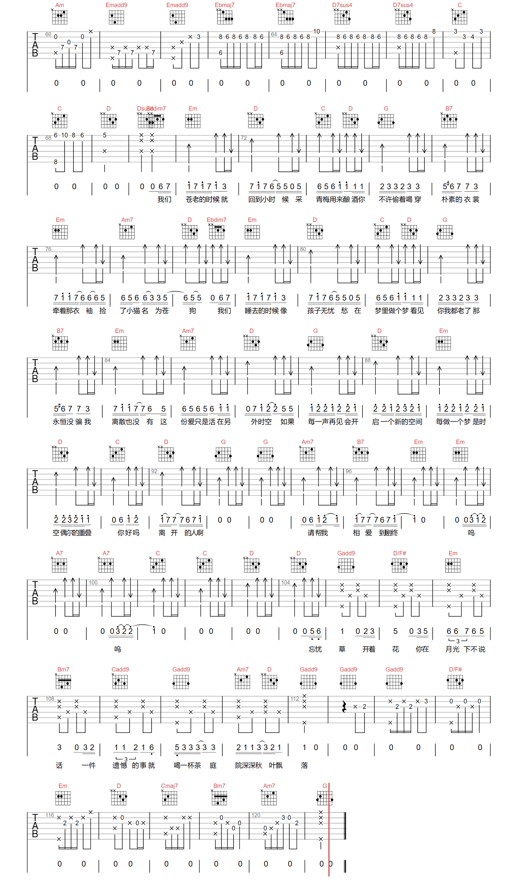 - 周深《亲爱的旅人啊》吉他谱 - 很多人都在弹的版本