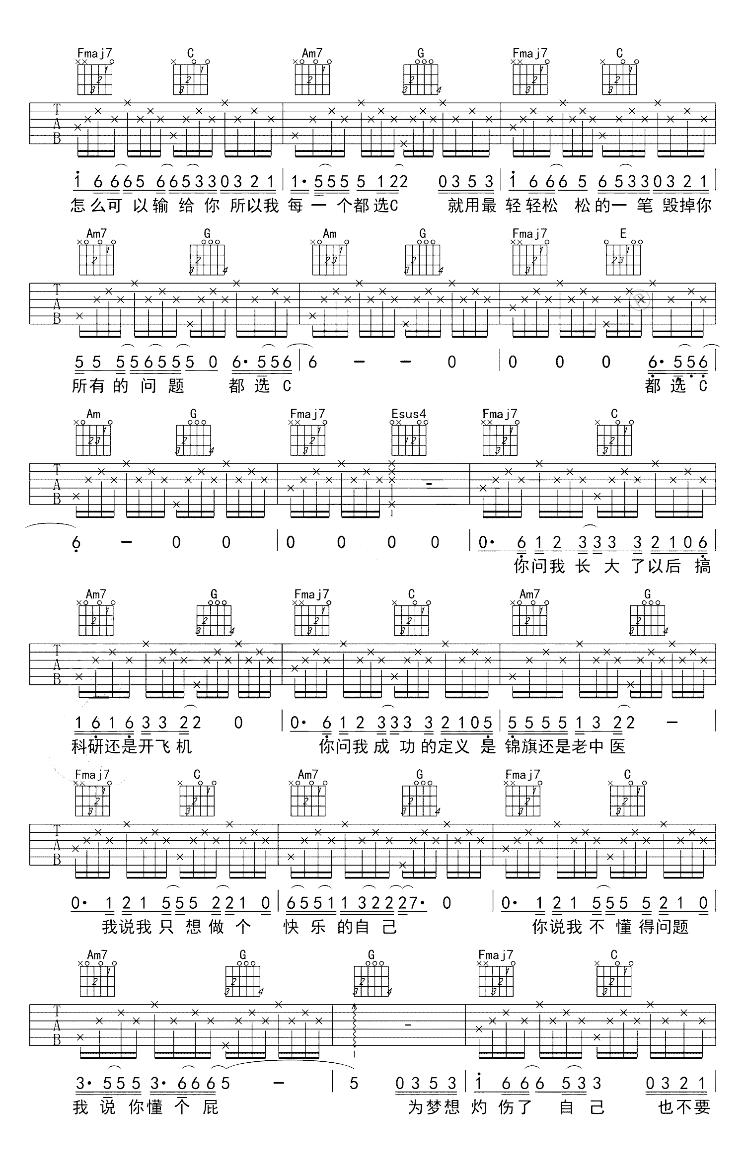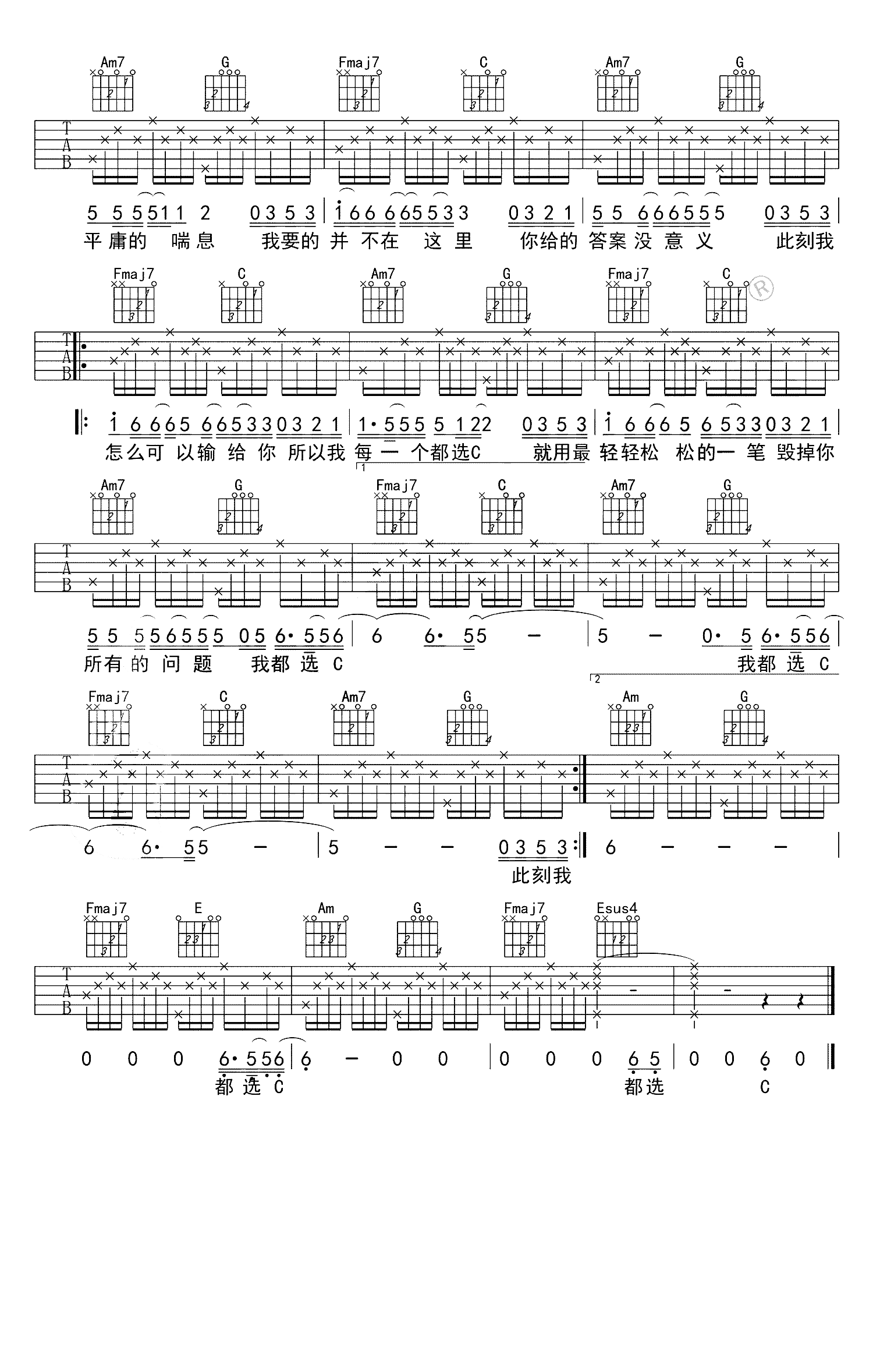 大鹏《都选C》吉他谱 - 很多人都在弹的版本