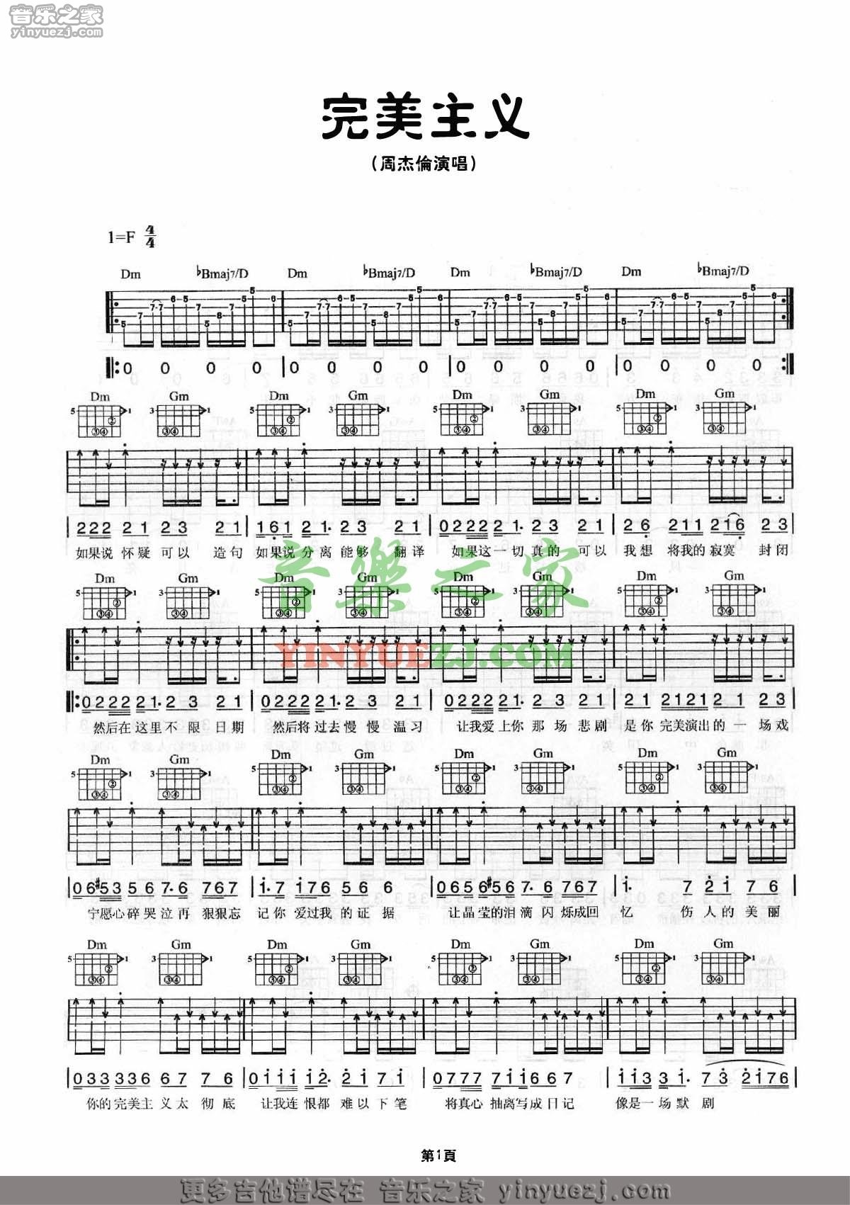 周杰伦《完美主义》吉他谱,YYZJ编配出品,共有5张高清图谱。