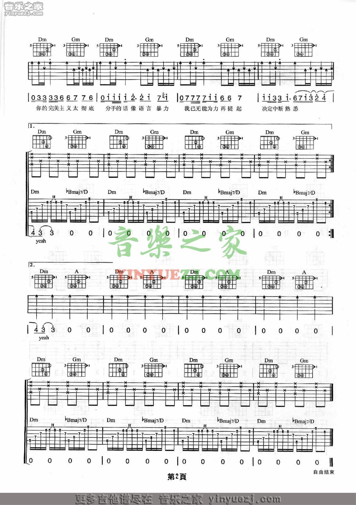 周杰伦《完美主义》吉他谱 - 完整版