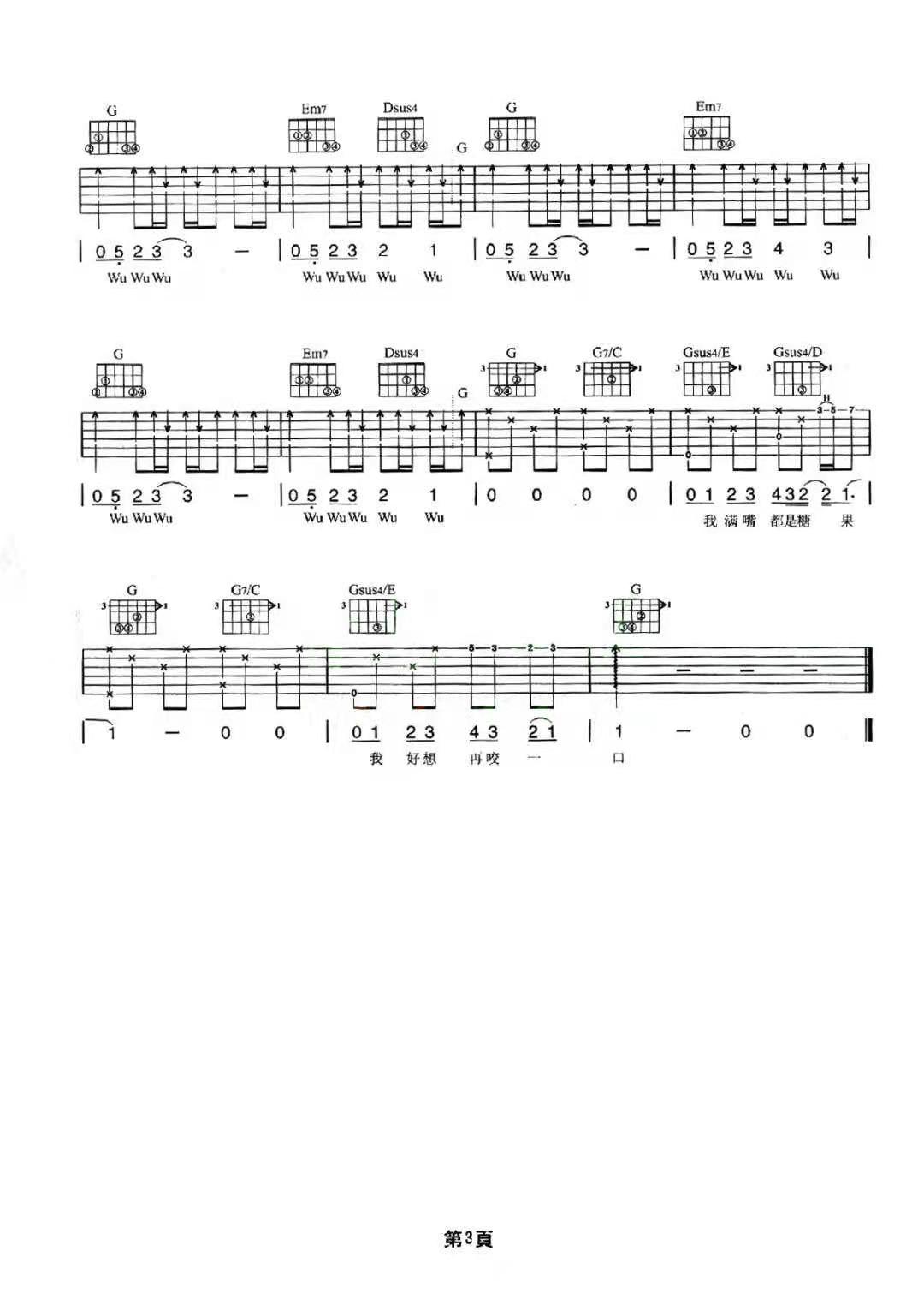 周杰伦《麦芽糖》吉他谱,共有3张高清图谱。