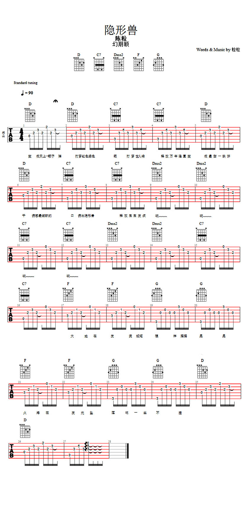 陈粒《隐形兽》吉他谱,和陈粒以往民谣风格不太一样的一首原创歌曲,首次加入电音,更加有味道。...