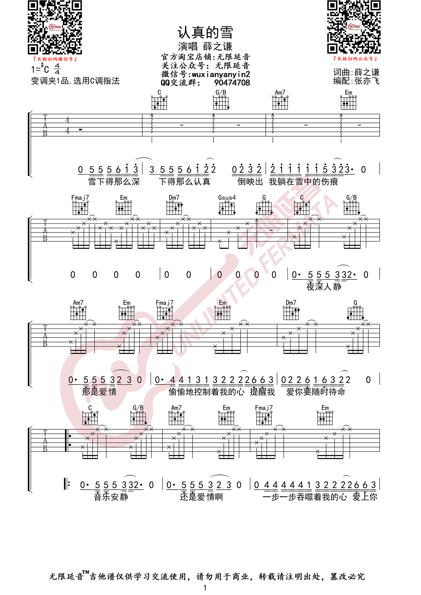 薛之谦《认真的雪》吉他谱_C调吉他弹唱谱...