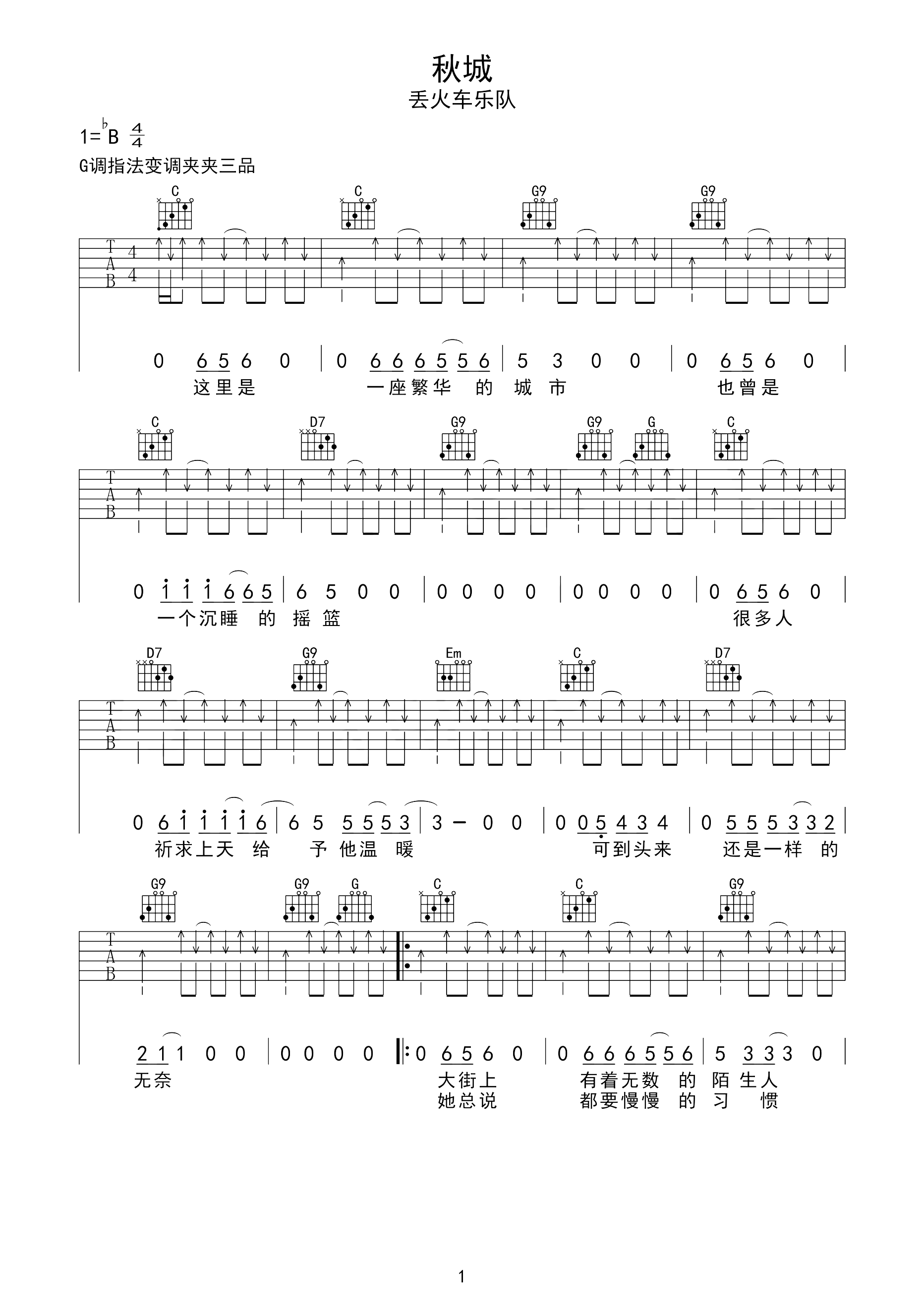 吉他丢火车乐队《秋城》吉他谱 - 好听到爆炸