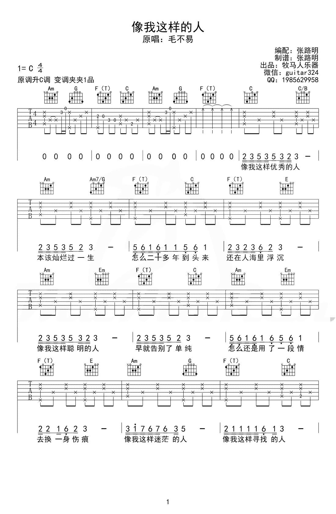 吉他毛不易《像我这样的人》吉他谱 - 很多人都在弹的版本