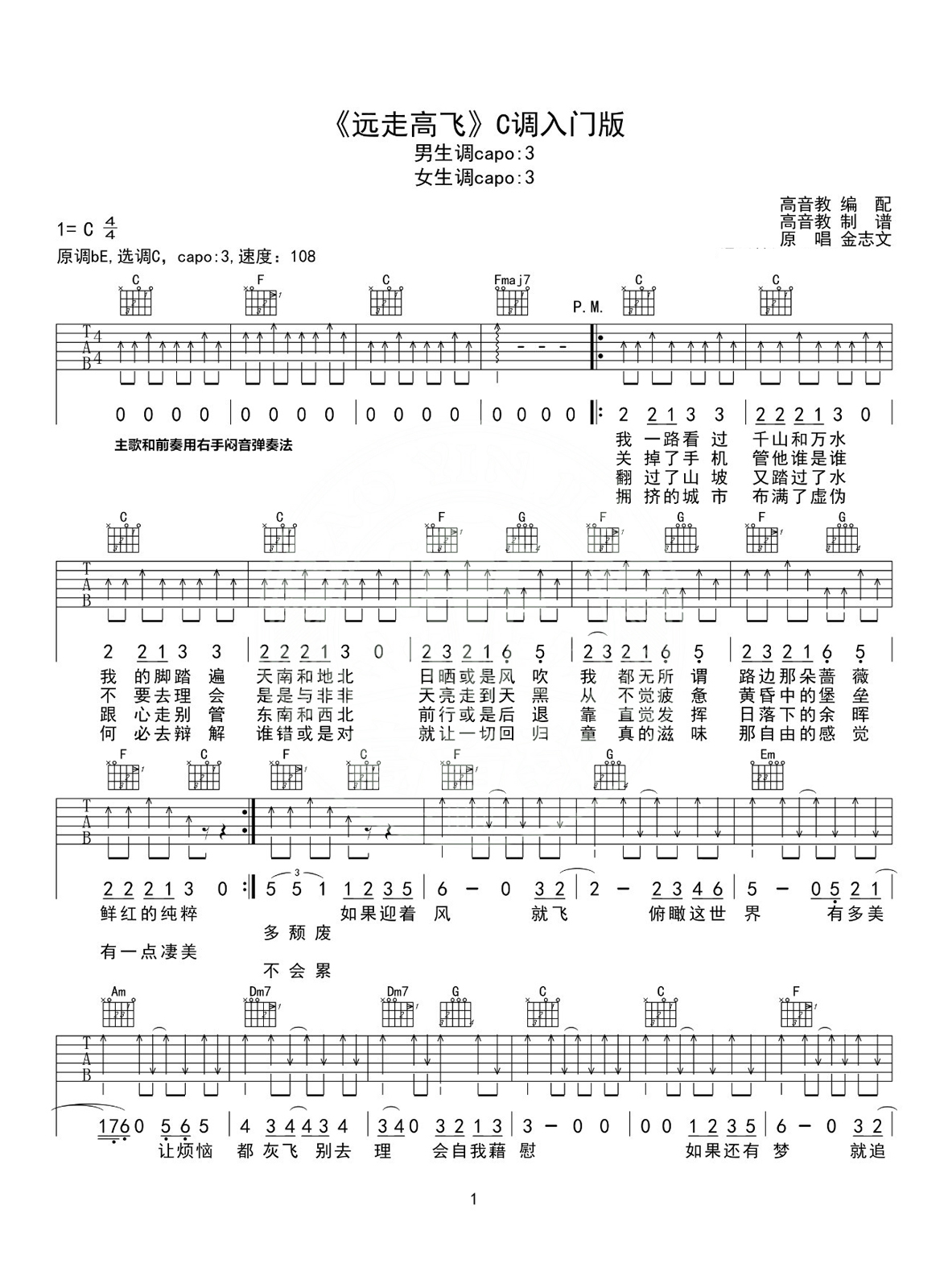 吉他金志文《远走高飞》吉他谱 - 完整版