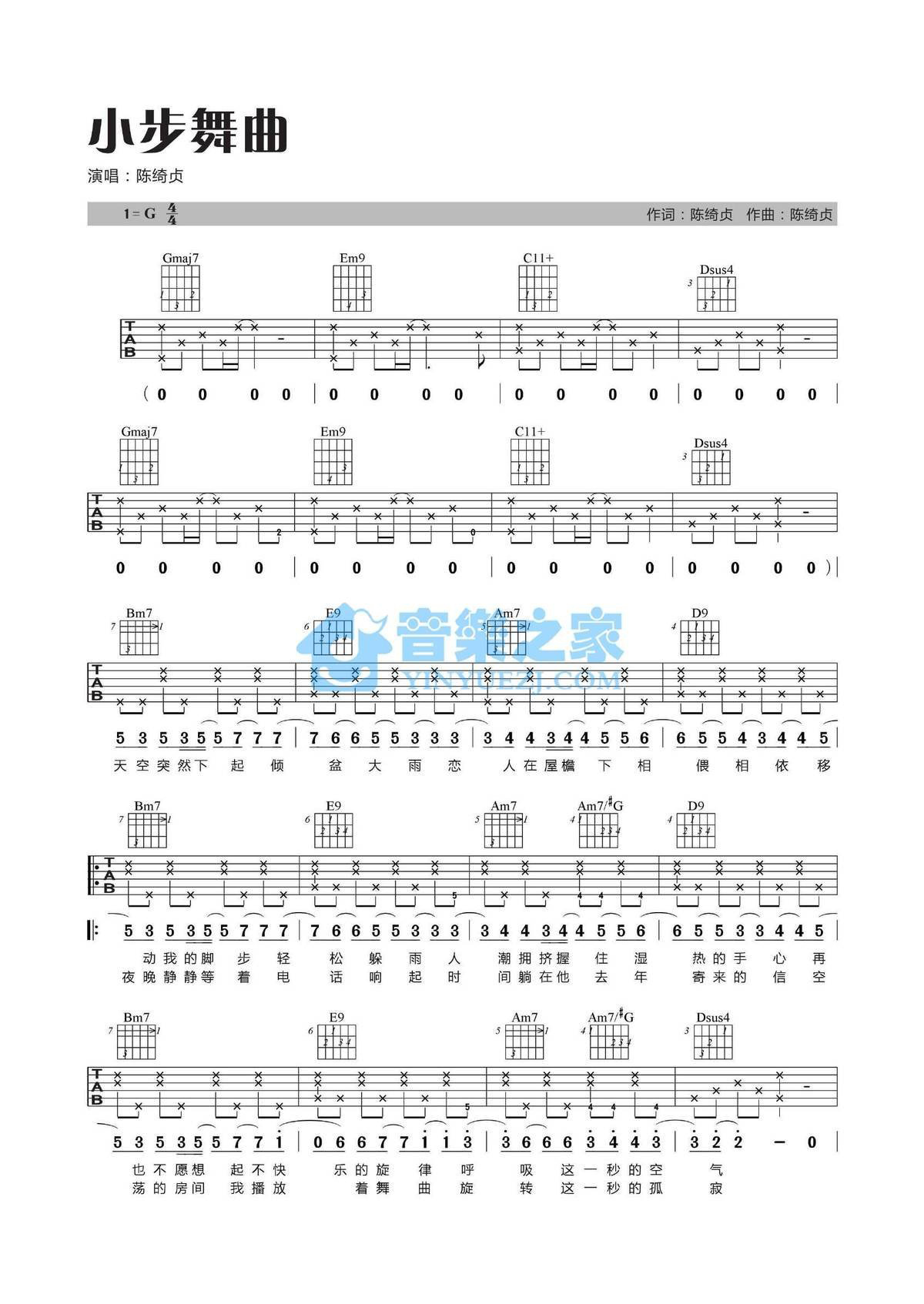 吉他陈绮贞《小步舞曲》吉他谱 - 小编推荐练习