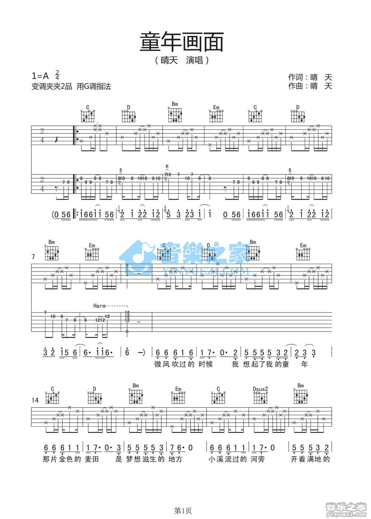 吉他晴天《童年画面》吉他谱